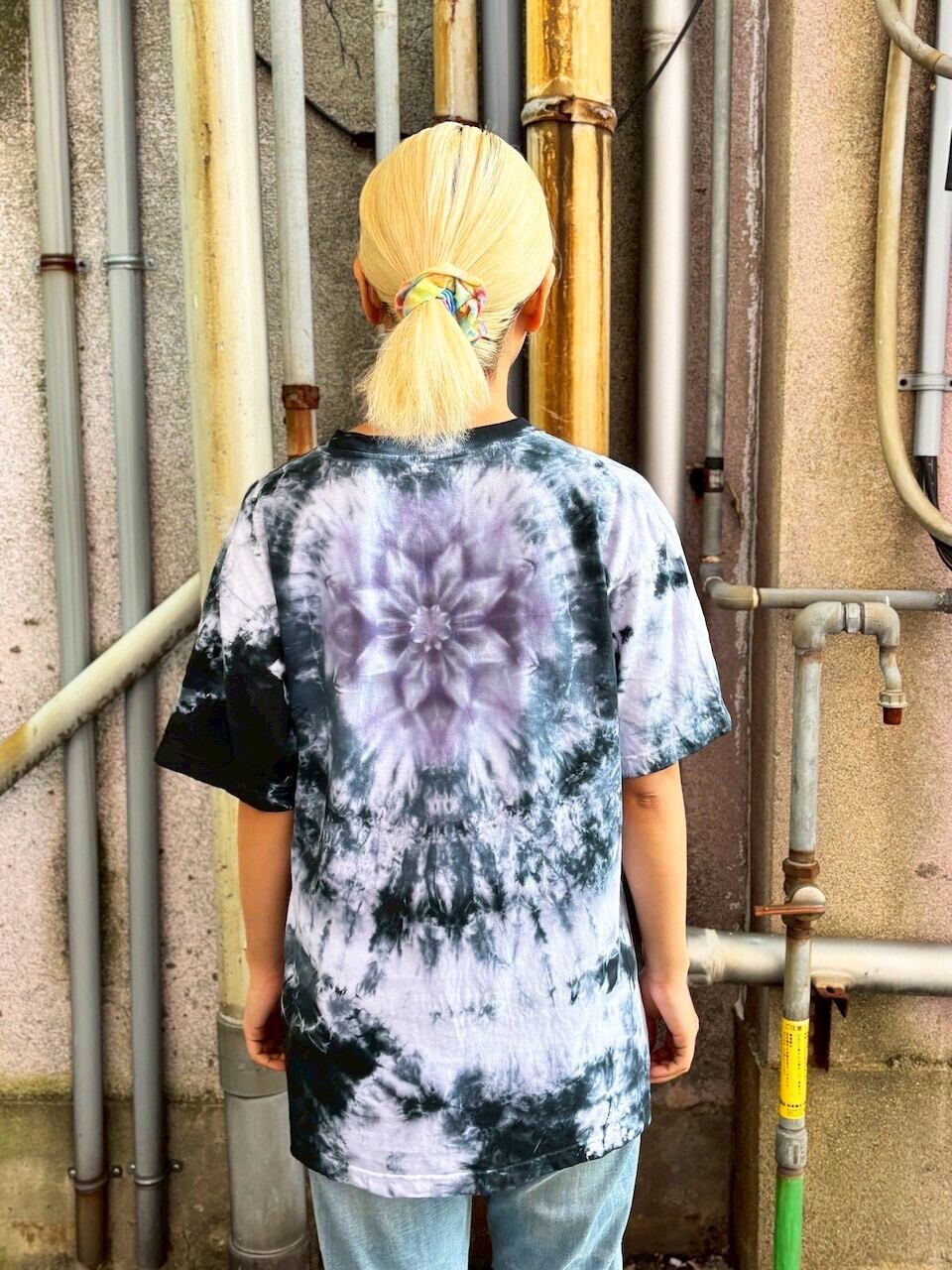 タイダイ Tシャツ Lサイズ 曼荼羅 ブラック ムラ染め。