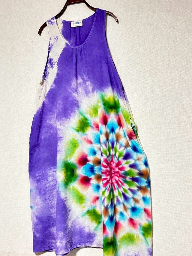 タイダイ Tie-dye ノースリーブ ワンピース 幻想的な大曼荼羅 薄紫色 HD24-19