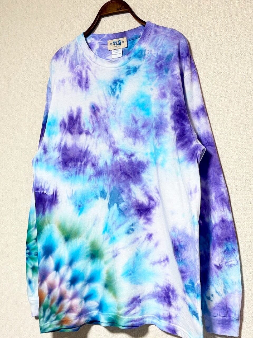 イダイ Tie-dye 長袖 Tシャツ Lサイズ 曼荼羅模様 ブルー×パープル ムラ染め HD24-62