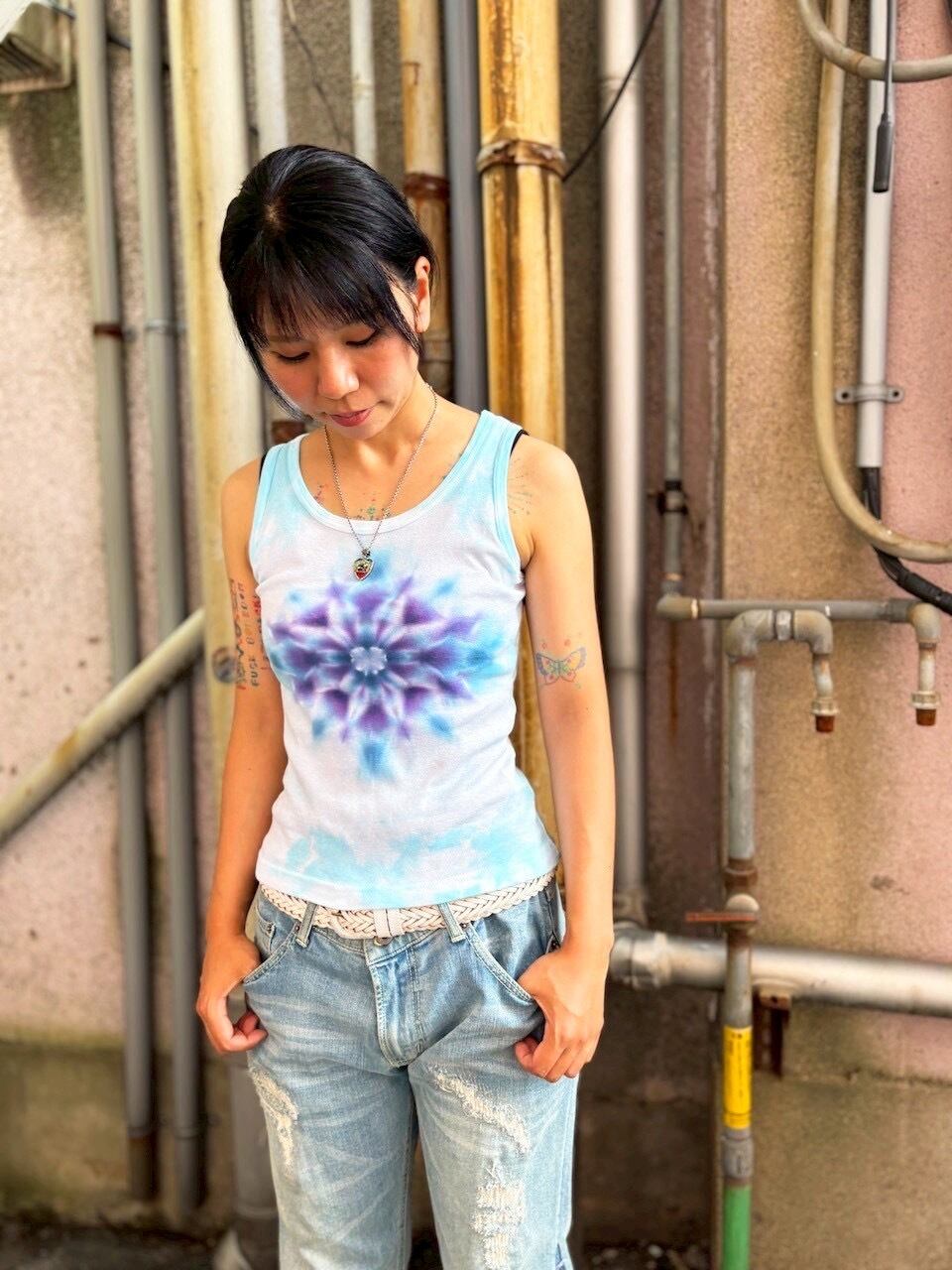 タイダイ Tie-dye タンクトップ Mサイズ 曼荼羅模様 ブルー ムラ染め HD24-64