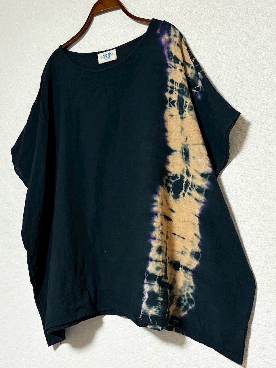 タイダイ Tie-dye プルオーバーブラウス ブラック×ベージュ HD24-66