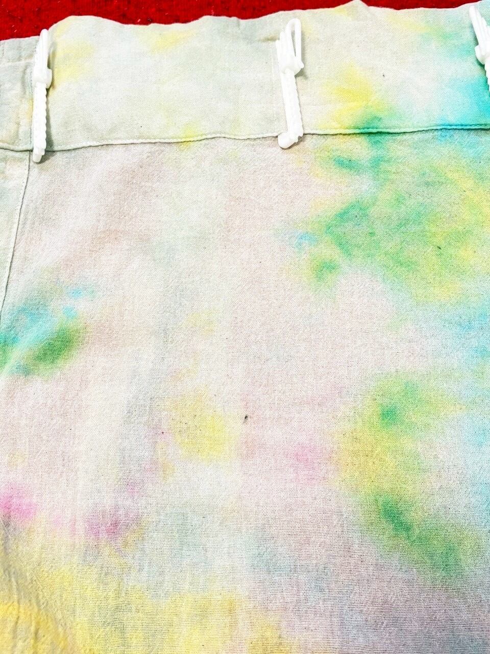 全て染色されるタイダイ染め、絞り染めの作品群。