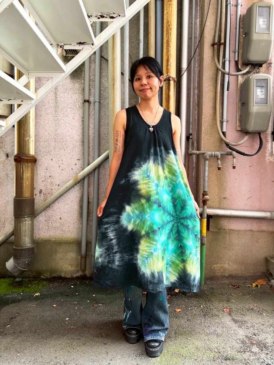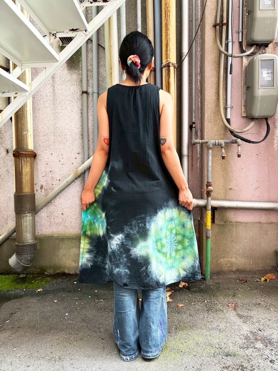 タイダイ Tie-dye ノースリーブ ワンピース 黒 ブラックビューティ 美しい幻想的なスノーフレイク HD24-83
