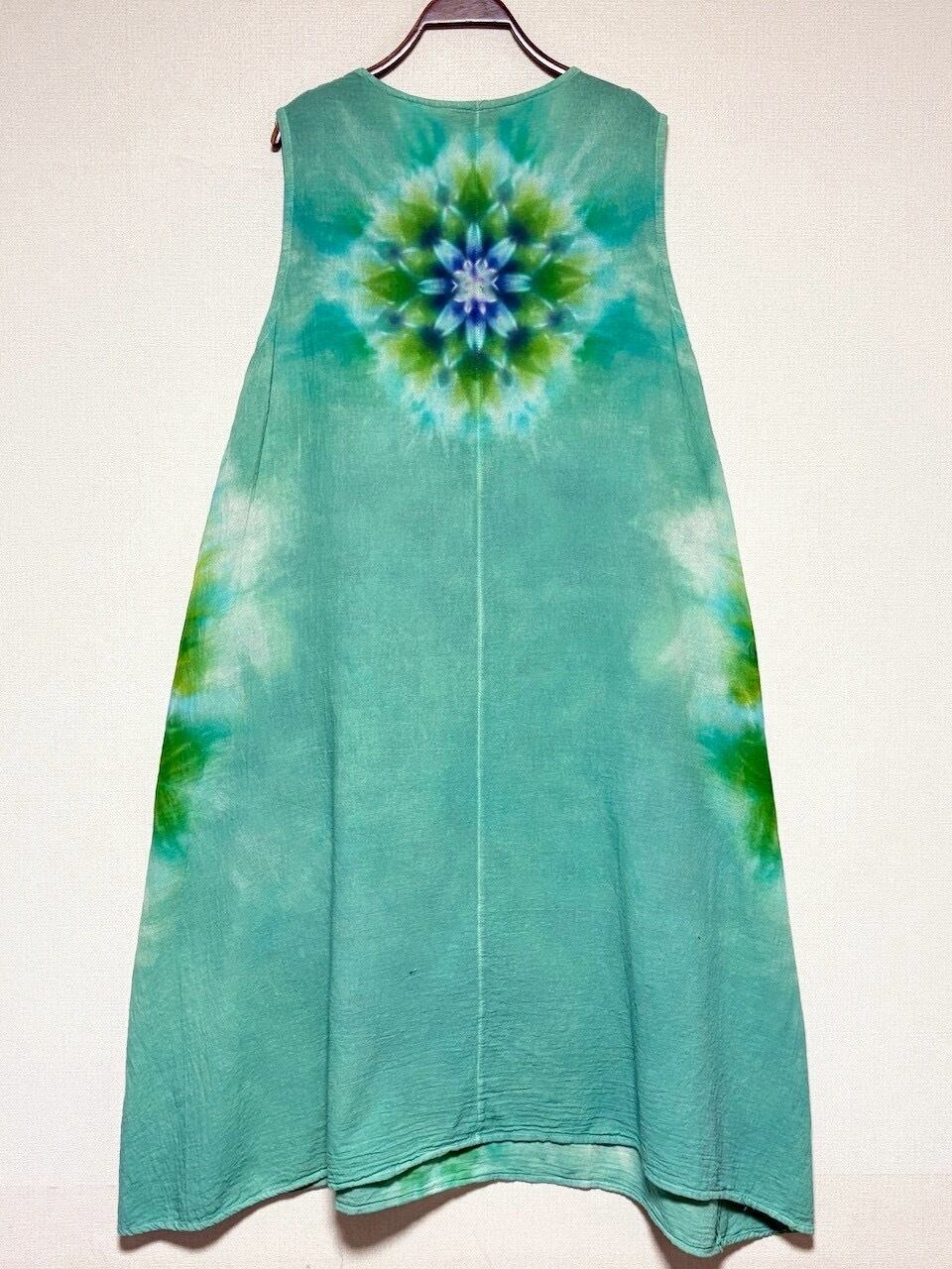 タイダイ Tie-dye ノースリーブワンピース 幻想的な大曼荼羅 千草色 HD24-86