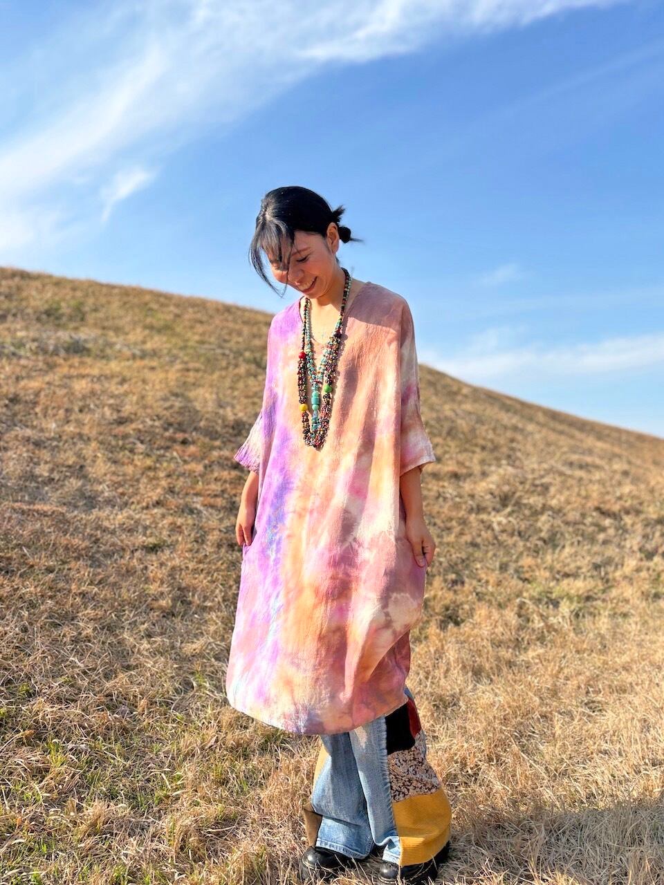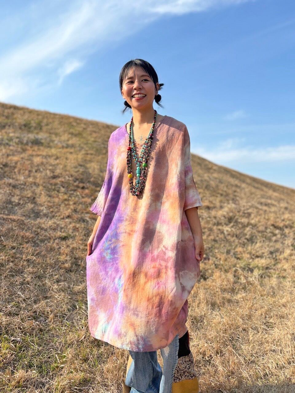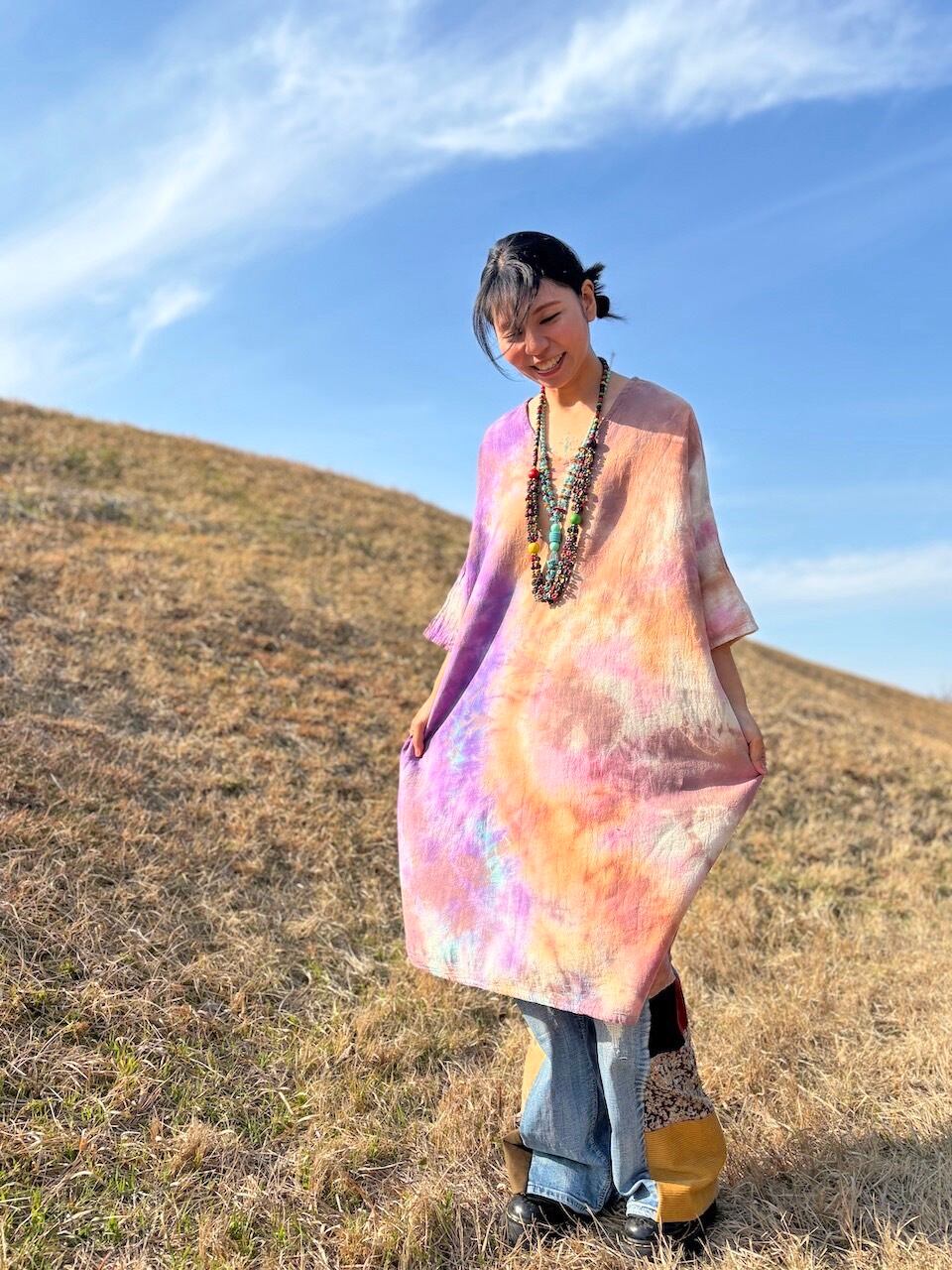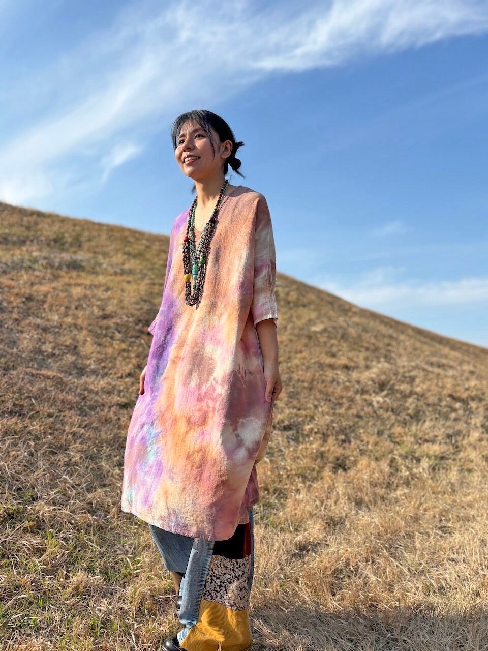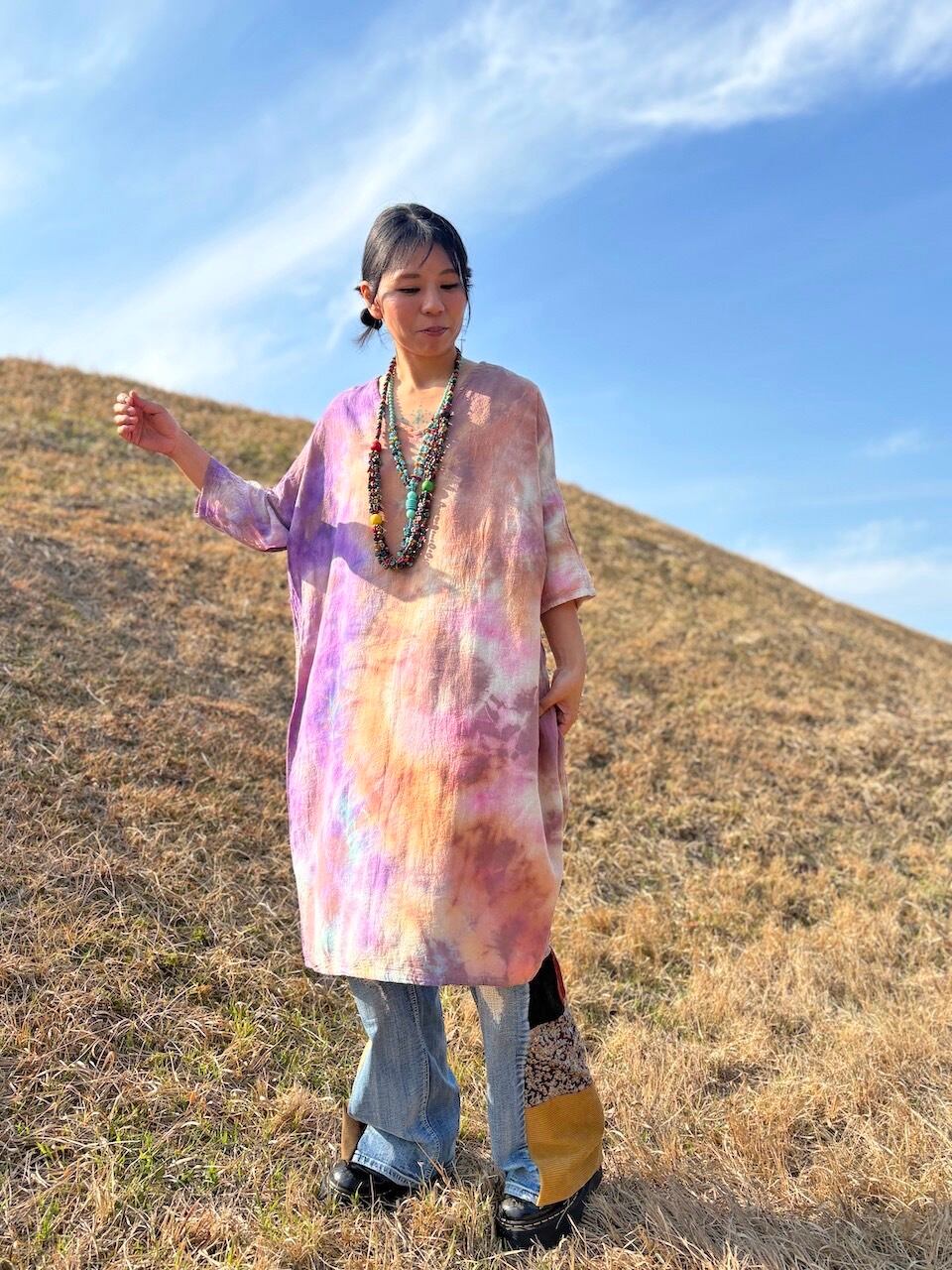 タイダイ Tie-dye ワンピース パープル×ベージュ Hippies Dye最新作 HD24-90