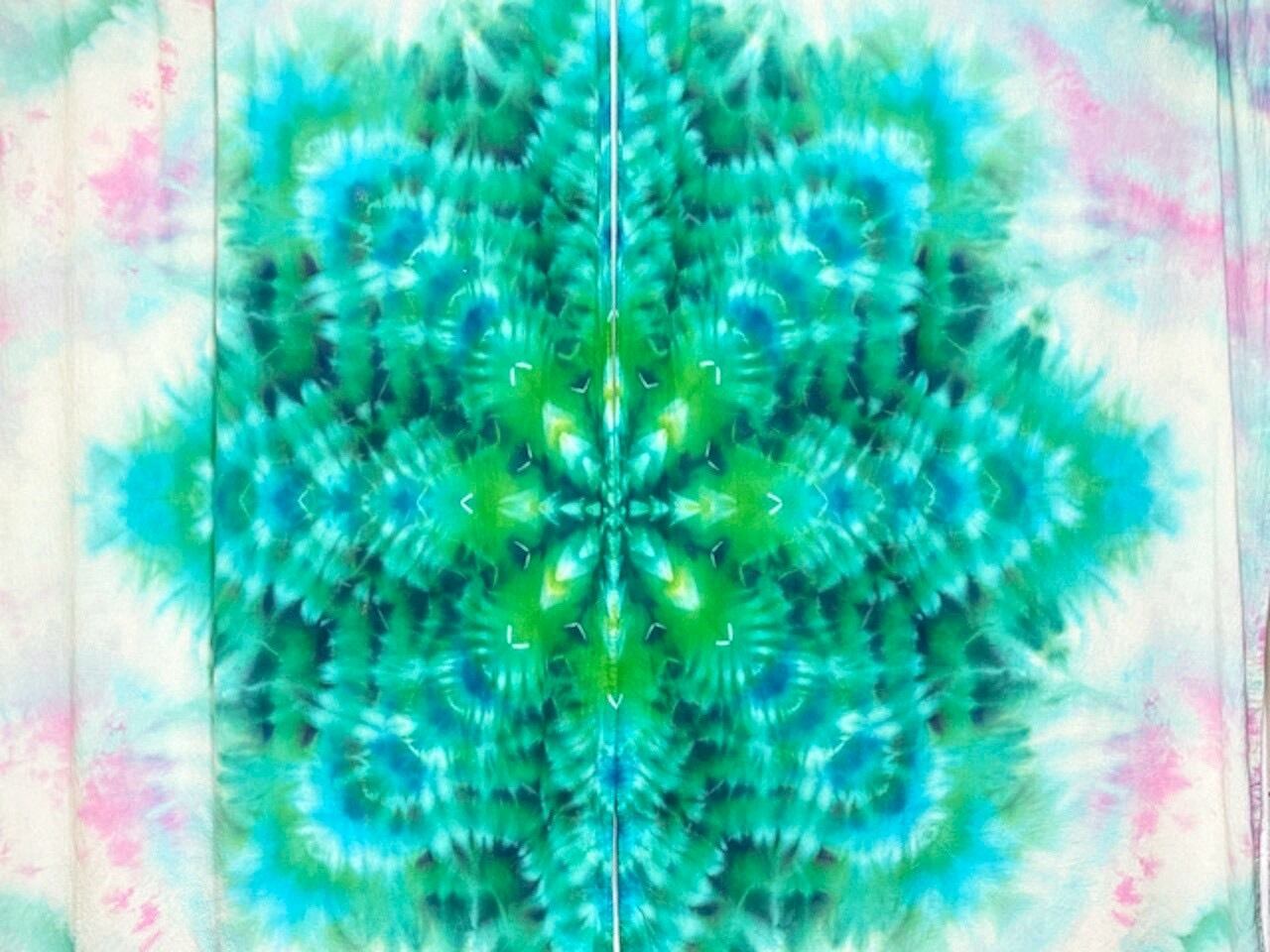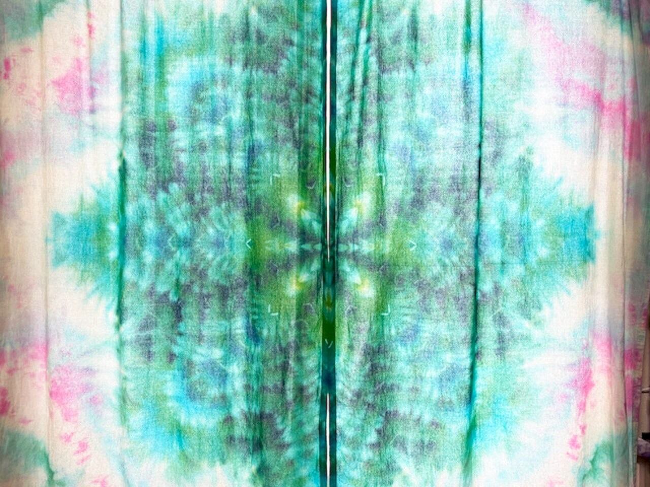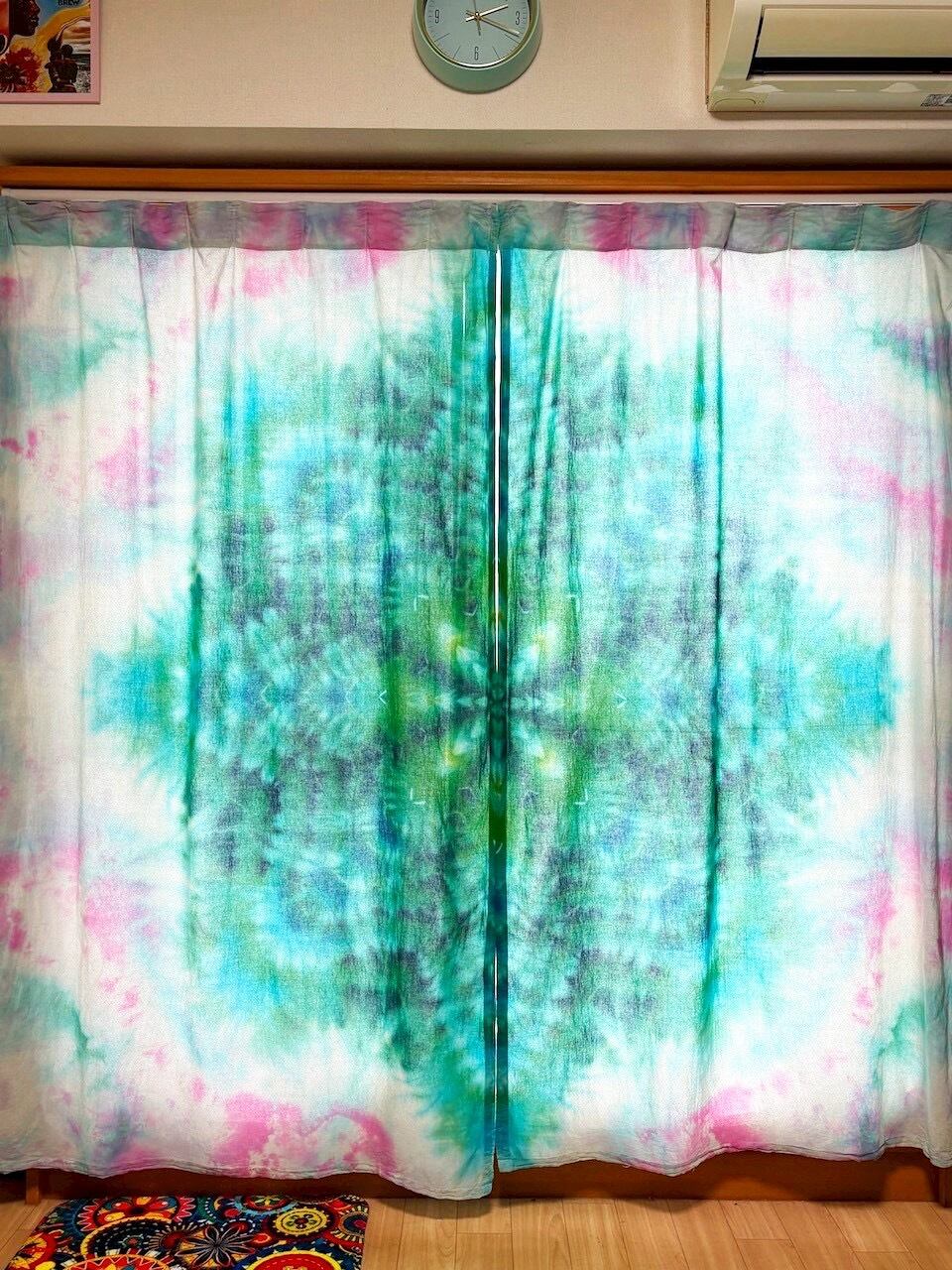 「タイダイ染め カーテン 美しい幻想的な翡翠色のスノーフレイク」