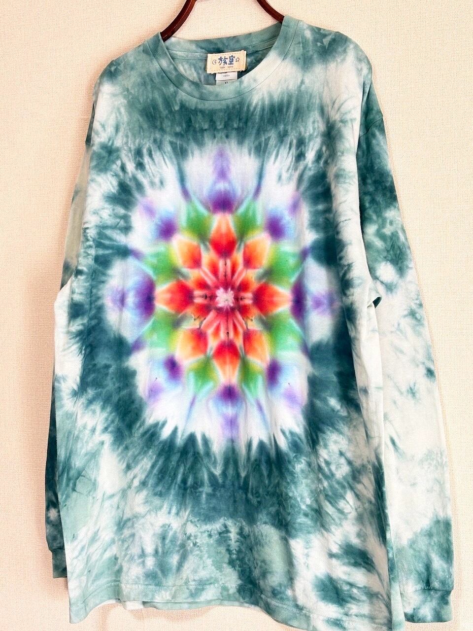 タイダイ Tie-dye 長袖 Tシャツ XLサイズ 曼荼羅 グリーン ムラ染め HIPPIES DYE新作 HD25-04