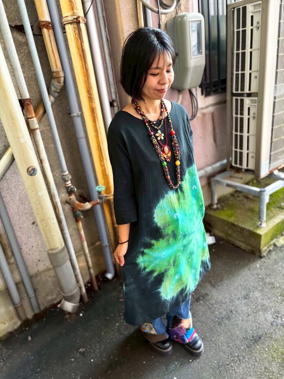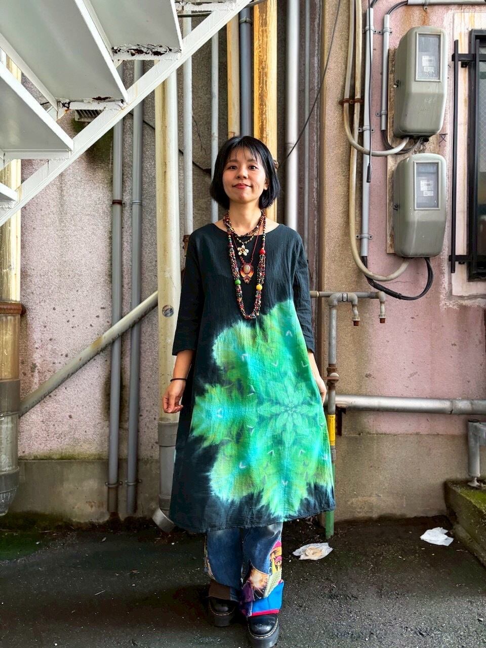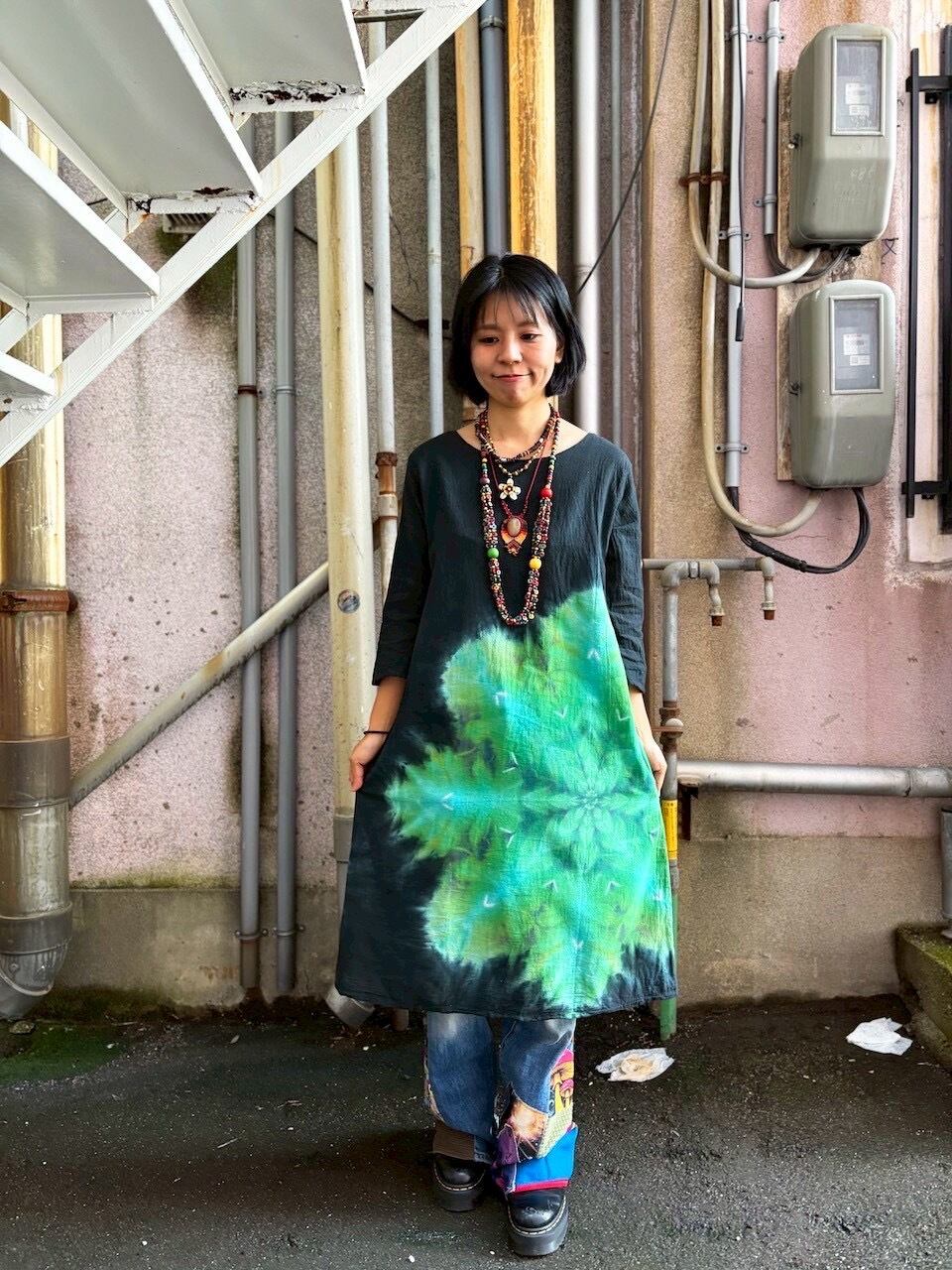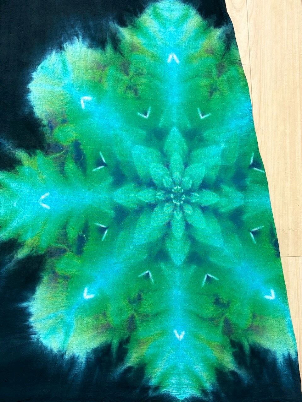 タイダイ Tie-dye 長袖ワンピース 黒 ブラックビューティ 碧翠色の幻想的なスノーフレイク HD25-15