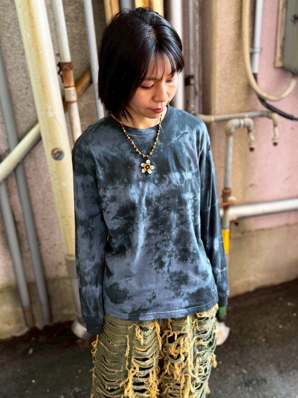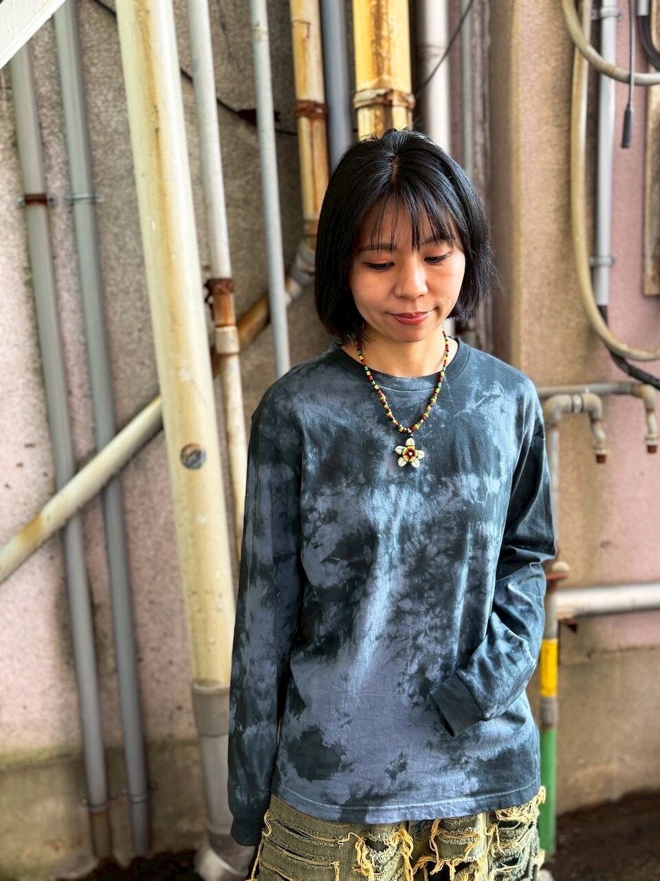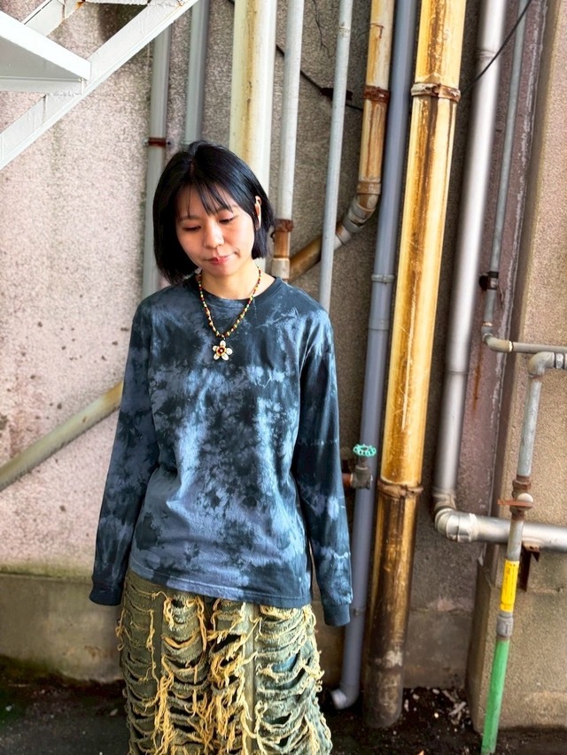 タイダイ Tie-dye 長袖Tシャツ Mサイズ ブラック×グレー ムラ染め HIPPIES DYE HD25-18