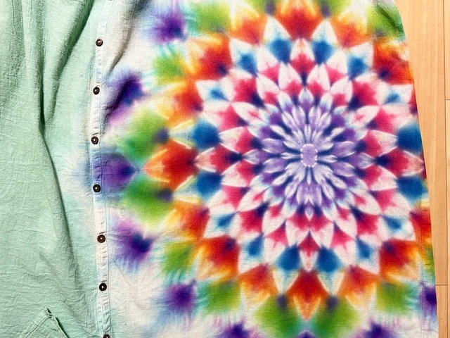 タイダイ Tie-dye 前開きワンピース 翡翠色 幻想的で華やかな大曼荼羅 HD25-28