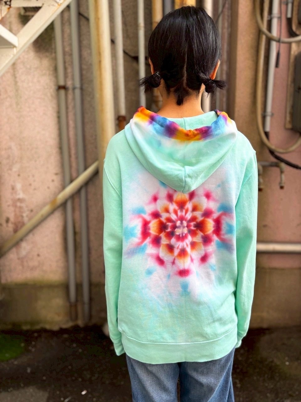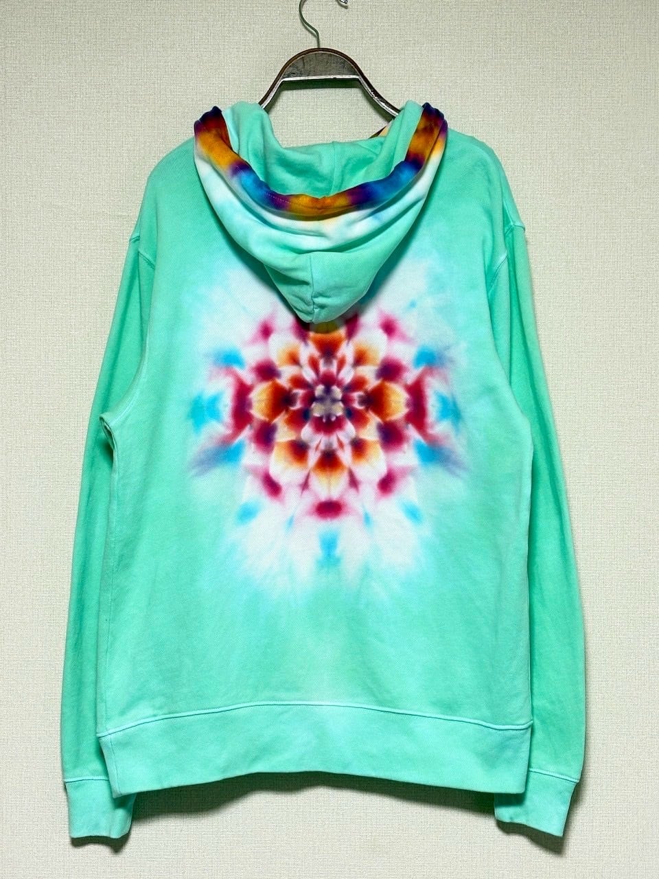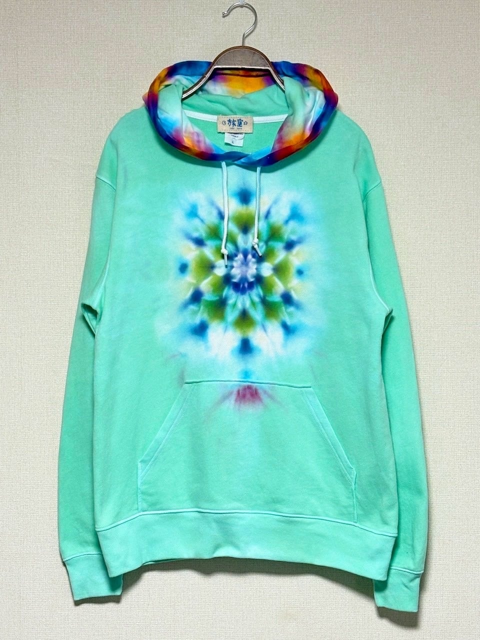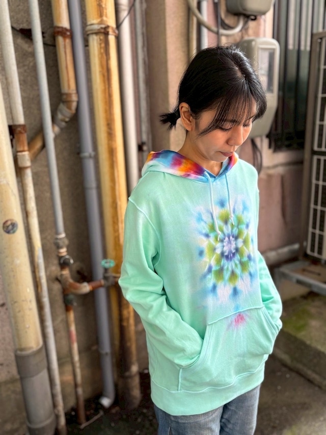 タイダイ Tie-dye プルオーバー パーカー Lサイズ 曼荼羅 ミントグリーン Hippies Dye最新作 HD25-37