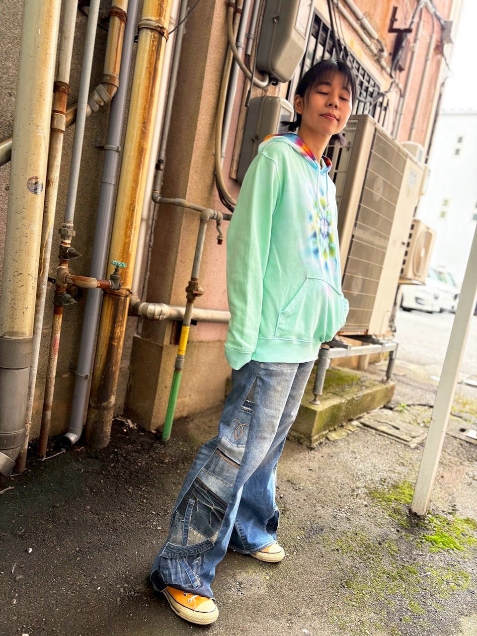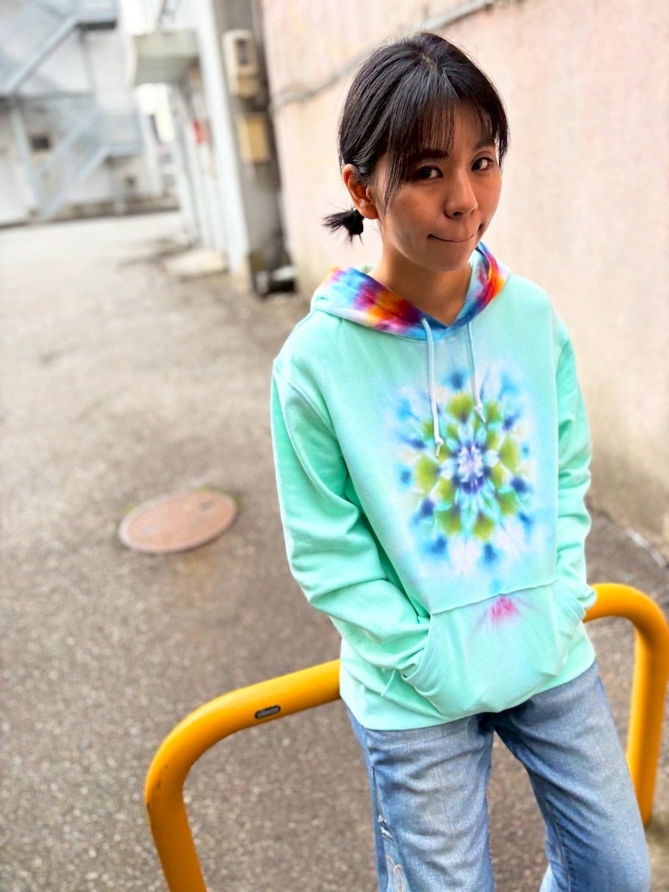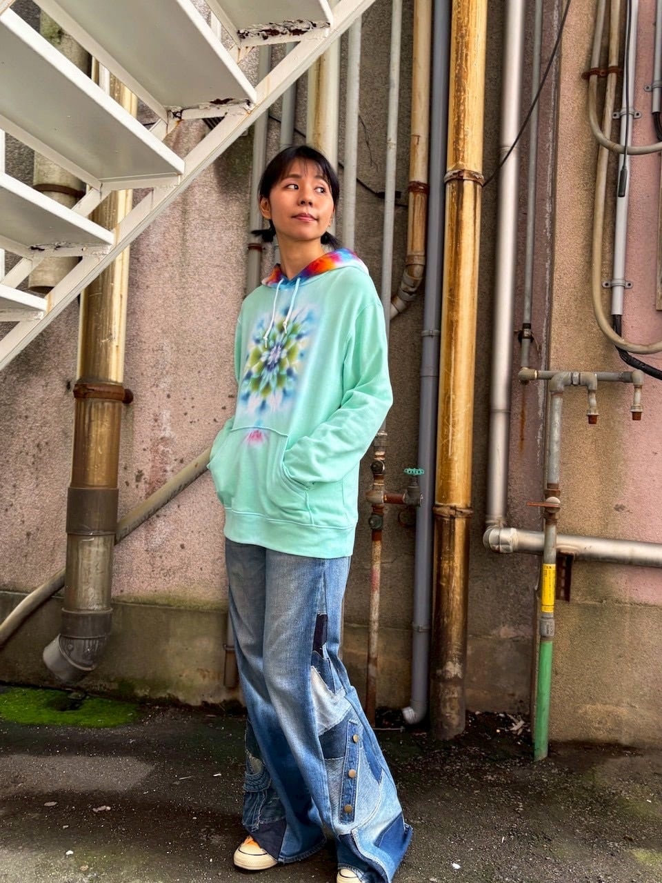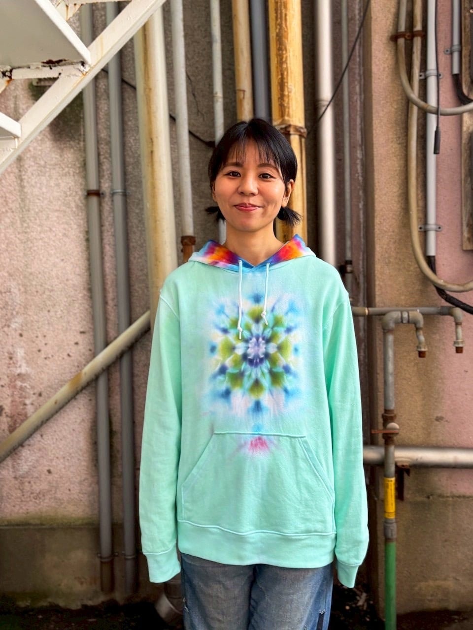 タイダイ Tie-dye プルオーバー パーカー Lサイズ 曼荼羅 ミントグリーン Hippies Dye最新作 HD25-37