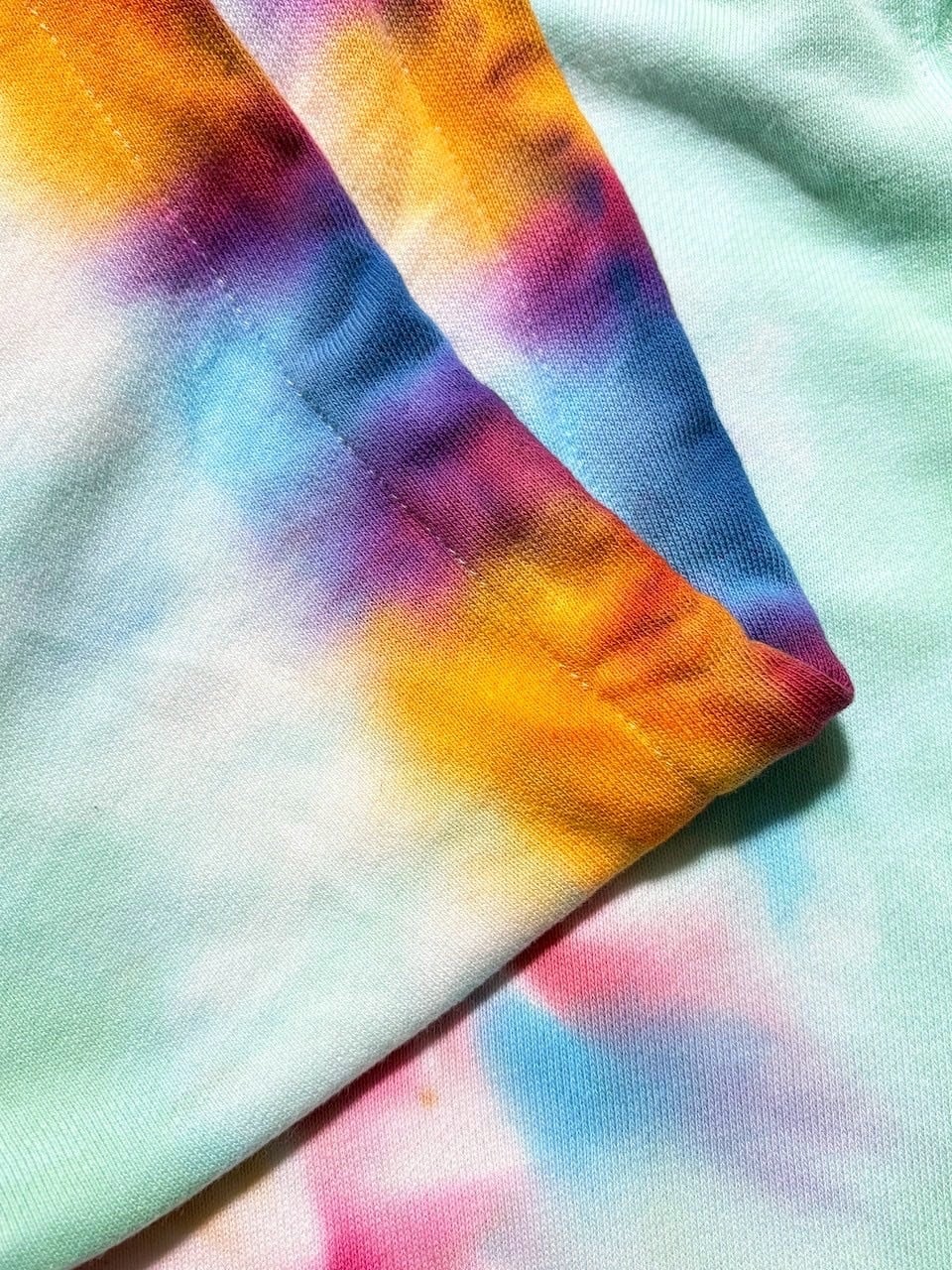 手染めならではの爽やかな色合いのタイダイ染めに