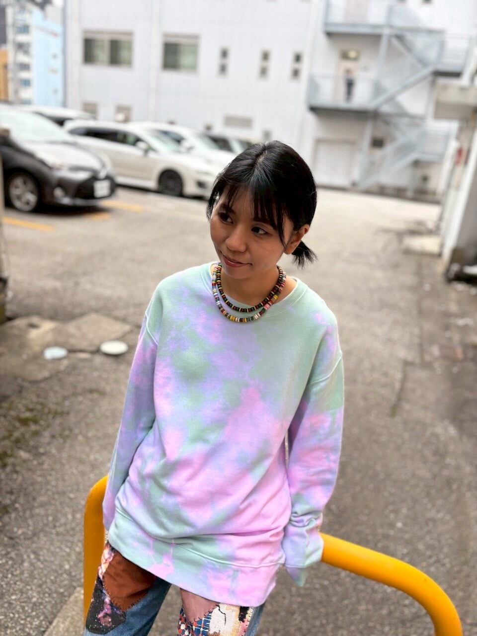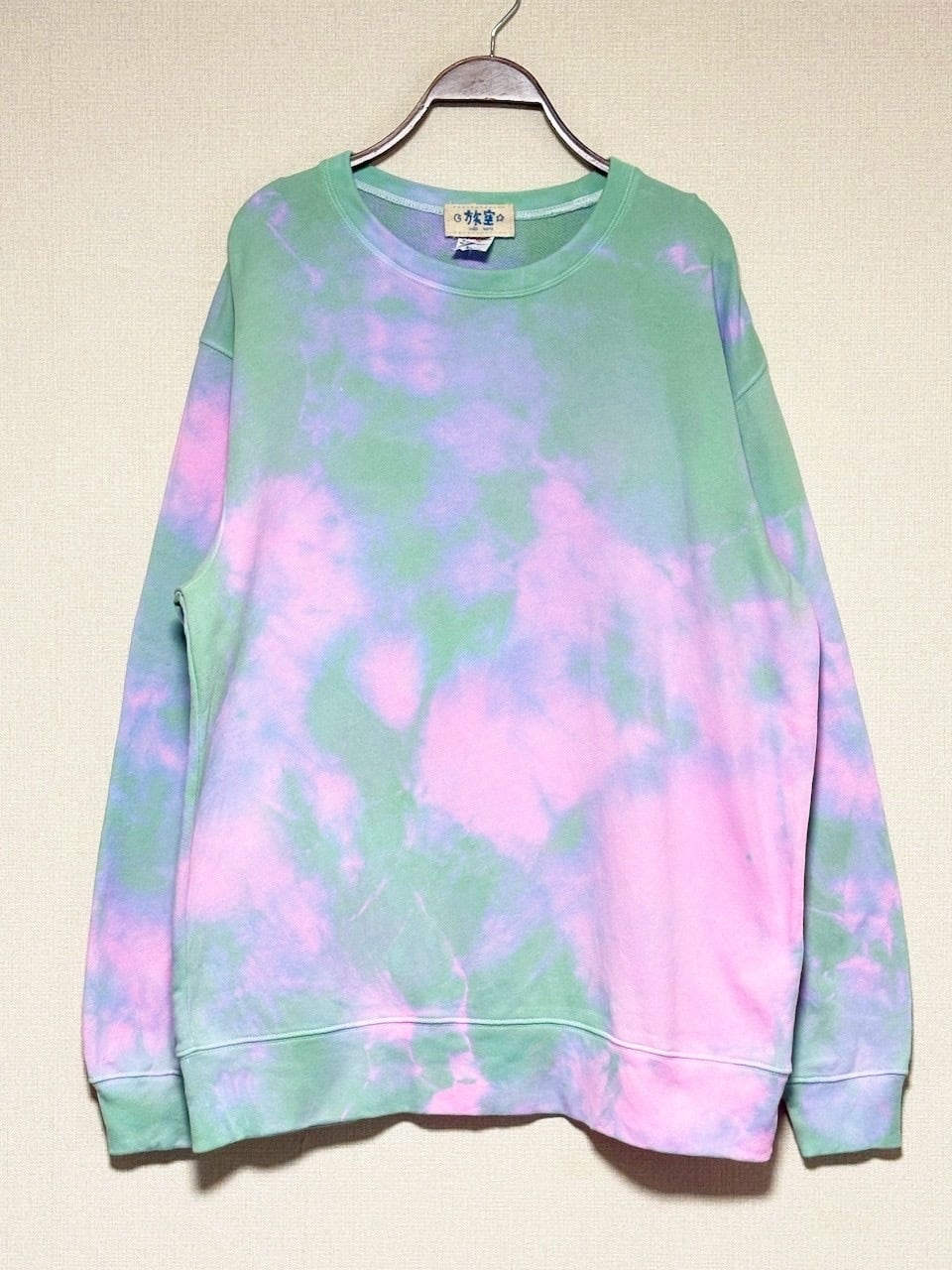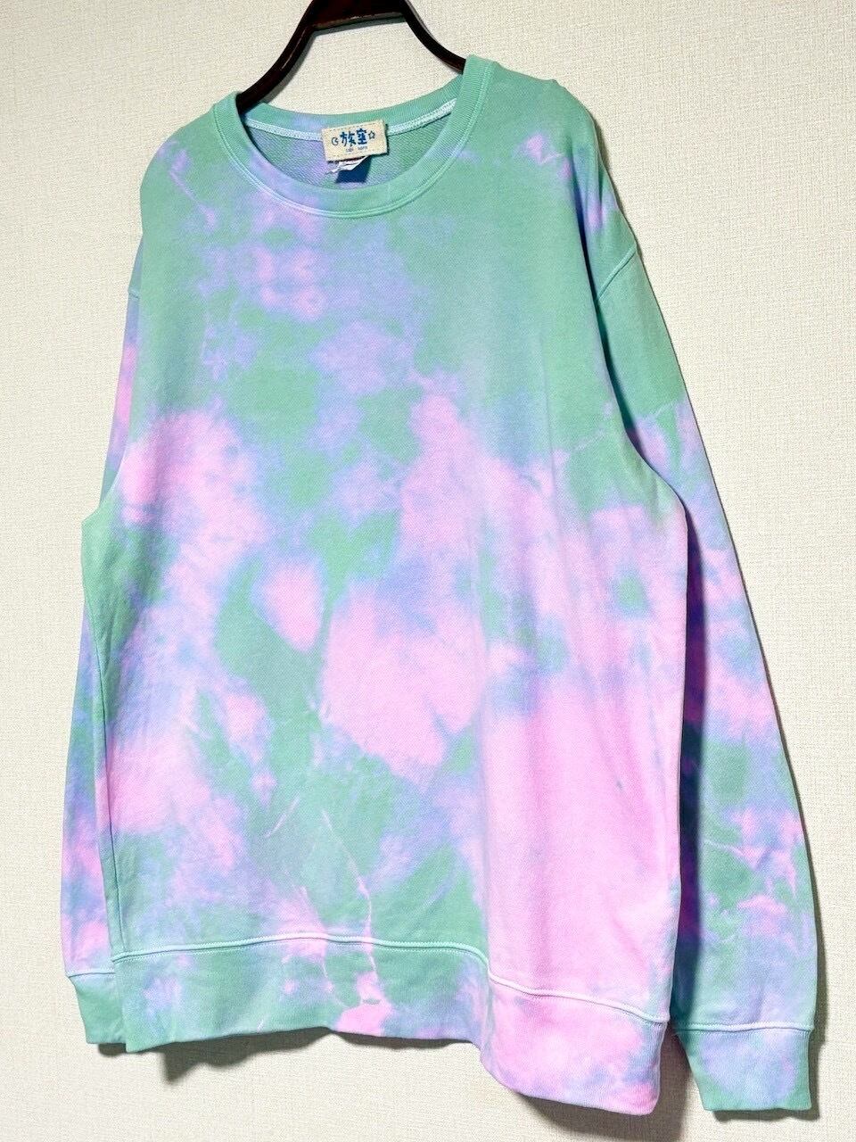 タイダイ Tie-dye スウェット トレーナー XLサイズ ピンク×グリーン ムラ染め HD25-38