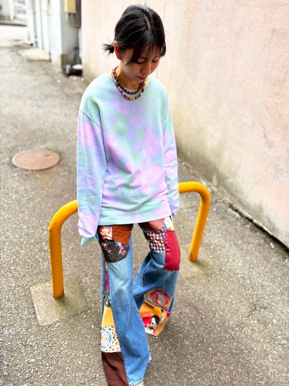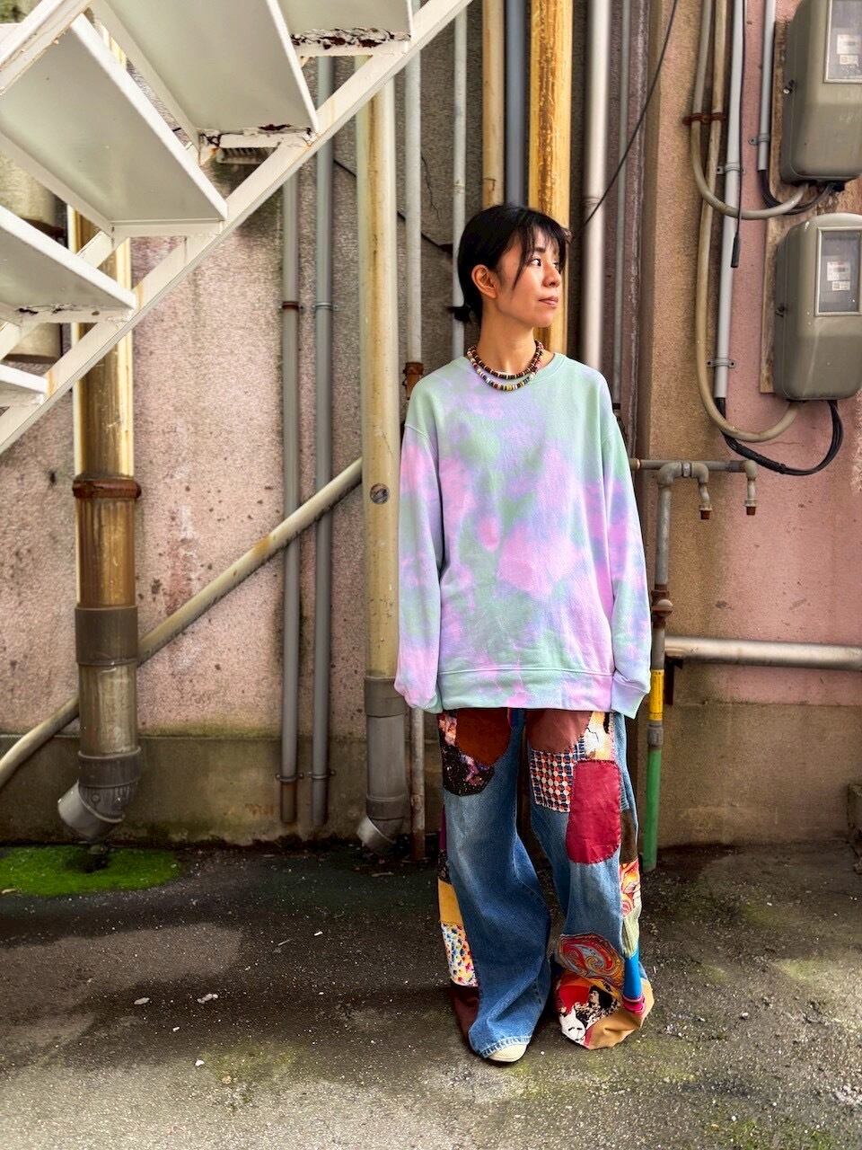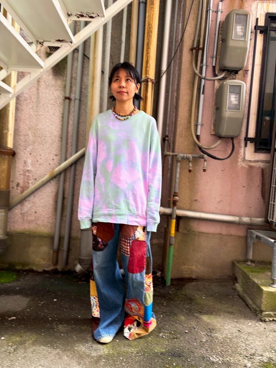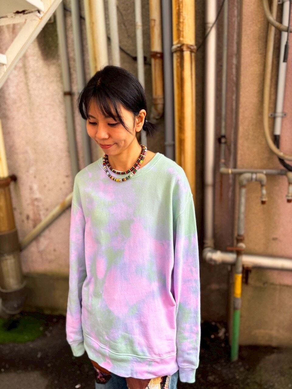 タイダイ Tie-dye スウェット トレーナー XLサイズ ピンク×グリーン ムラ染め HD25-38