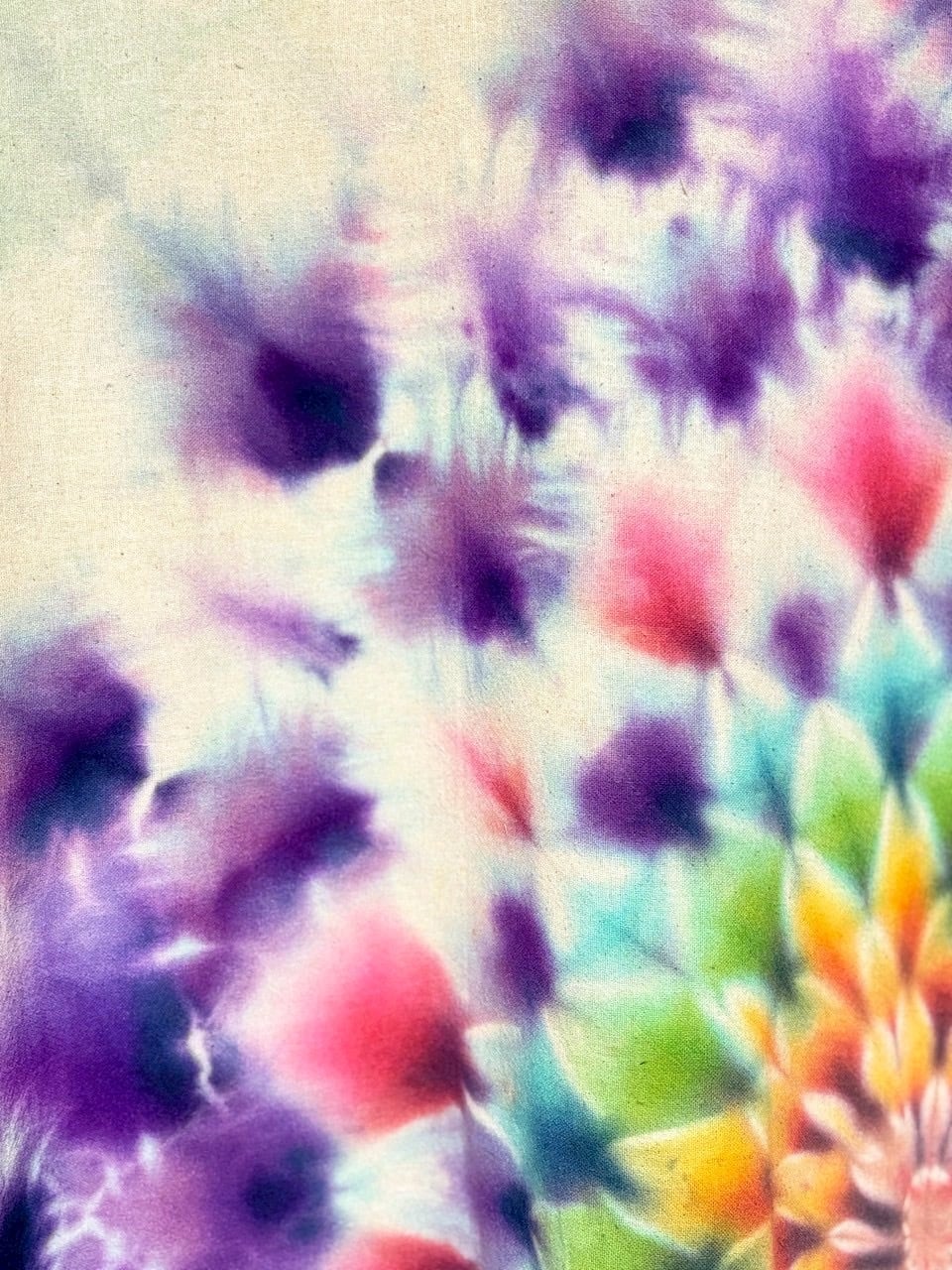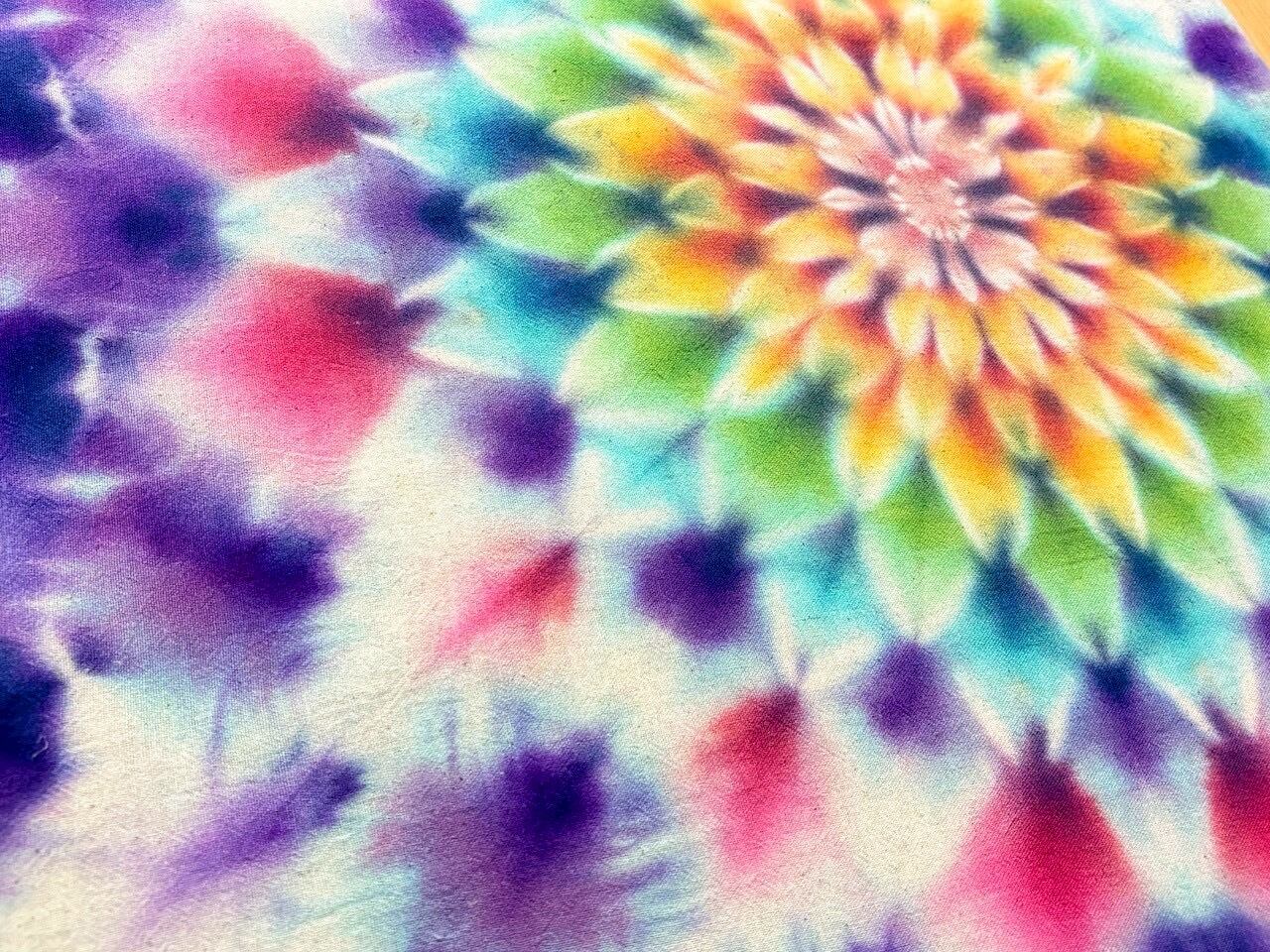 全て染色されるタイダイ染め、絞り染めの作品群。