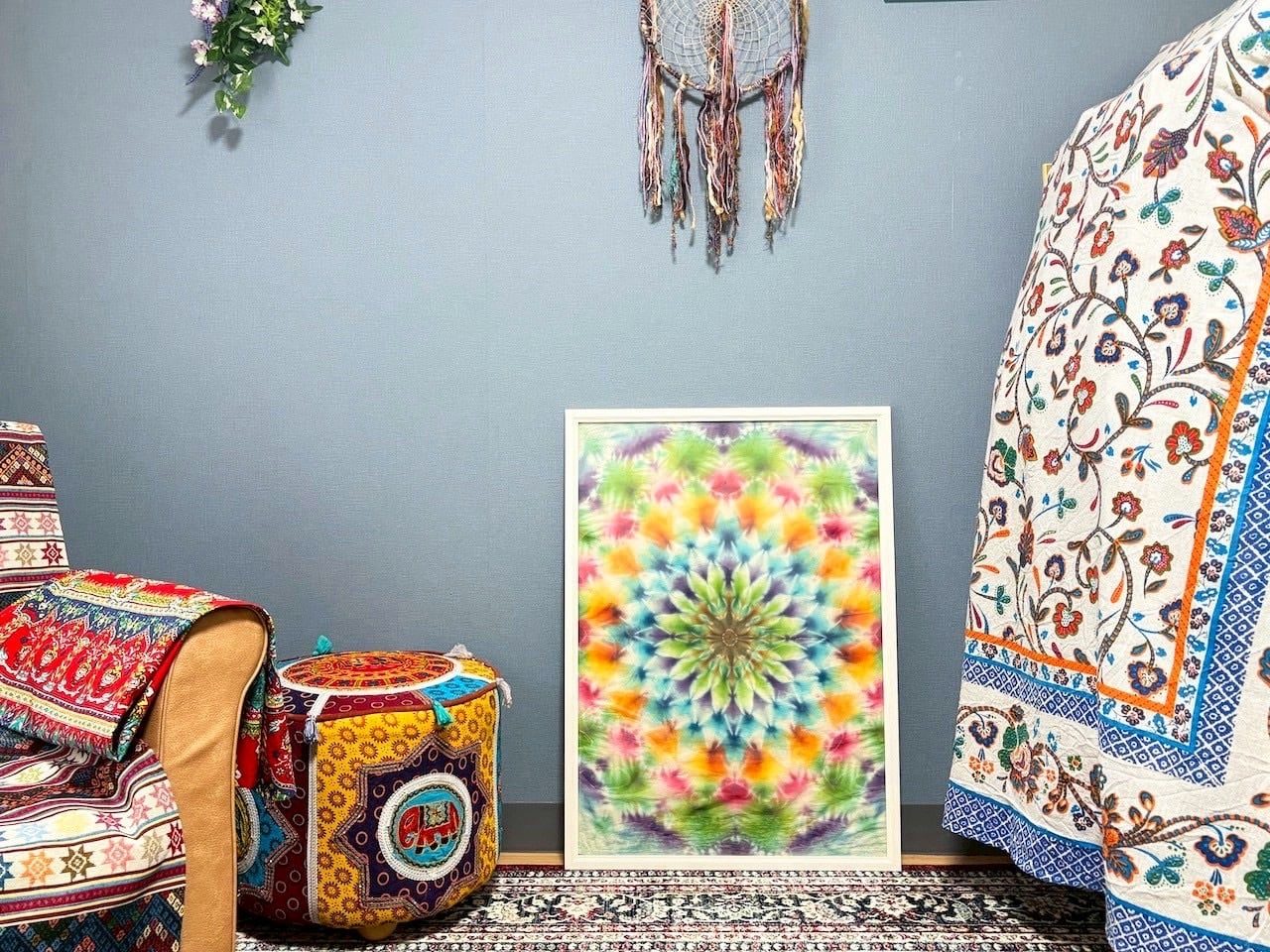 タイダイ染めの美しさと額入りの高級感が融合したこの商品は