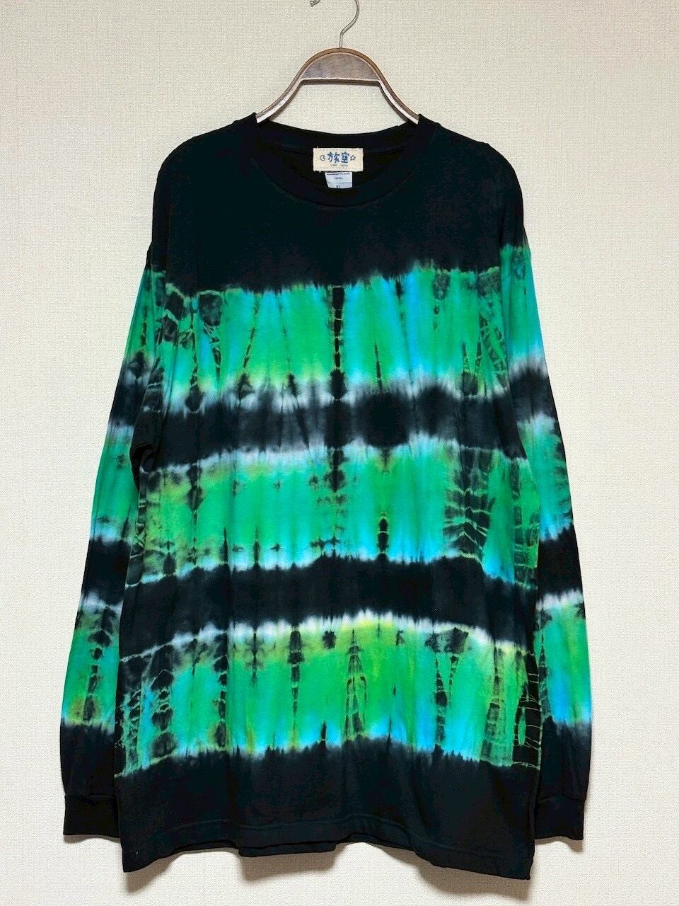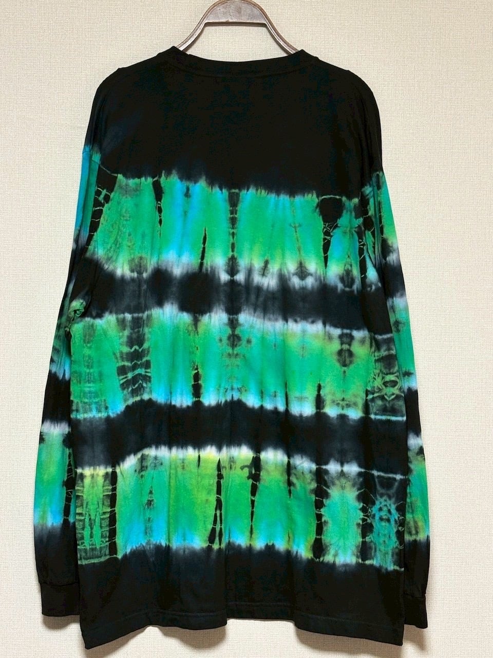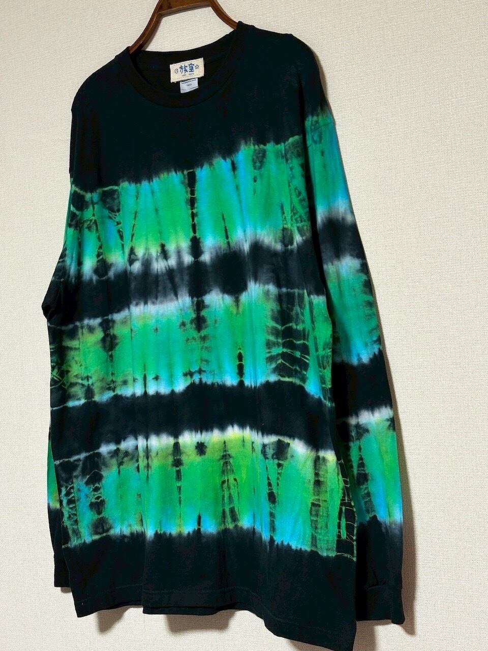 タイダイ 長袖Tシャツ XLサイズ ブラック×グリーン ボーダー。