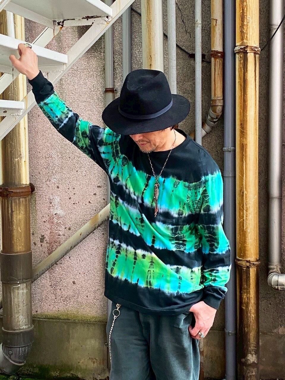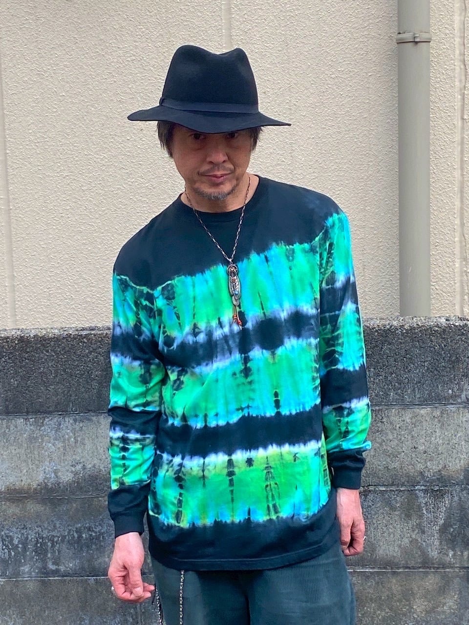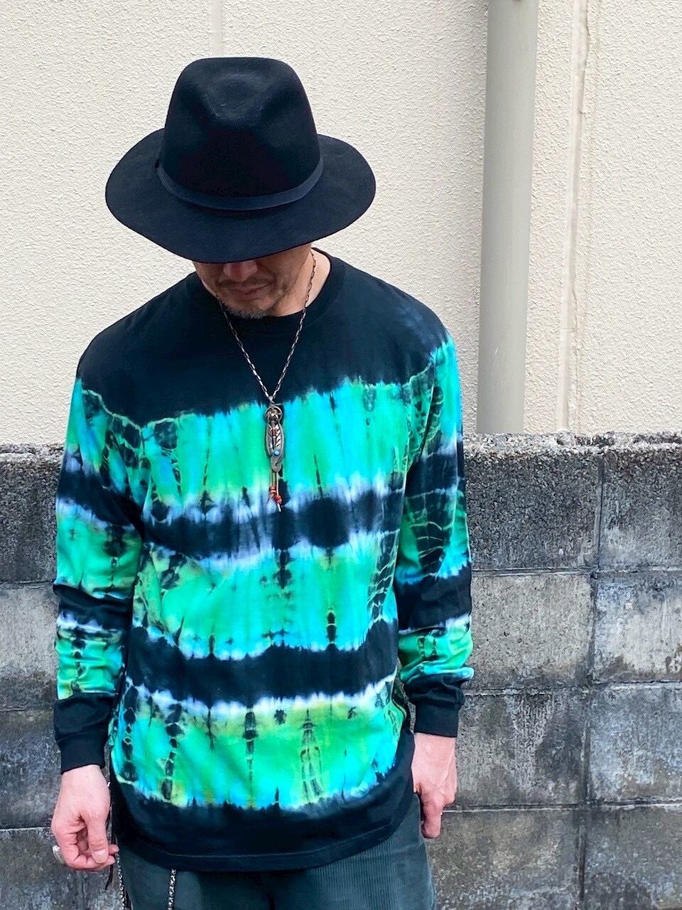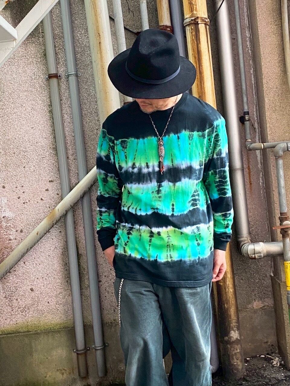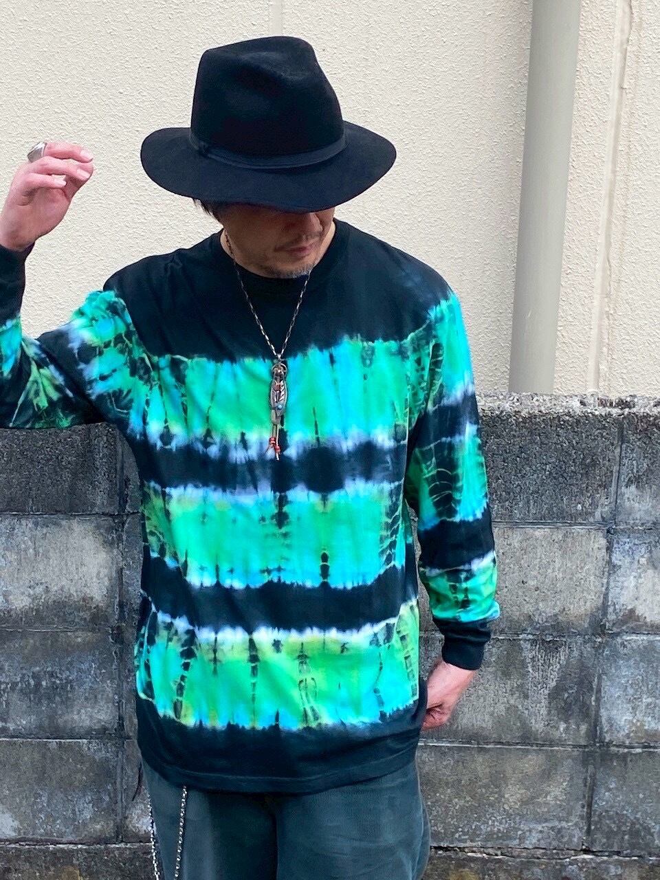 タイダイ Tie-dye 長袖Tシャツ XLサイズ ブラック×グリーン ボーダー HIPPIES DYE HD25-48