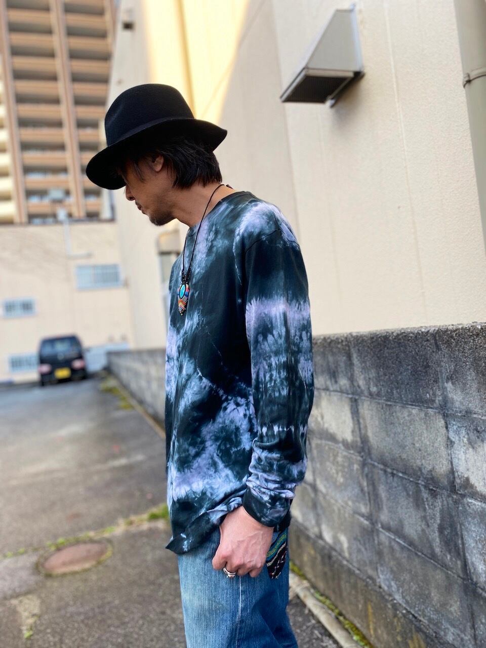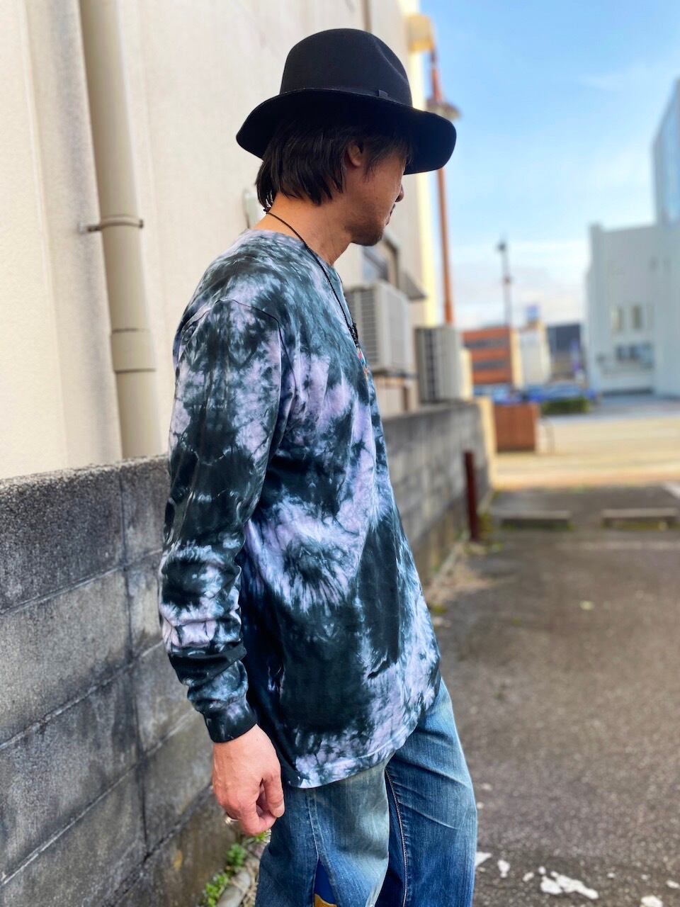 タイダイ Tie-dye 長袖Tシャツ XLサイズ ブラック ムラ染め HIPPIES DYE HD25-55