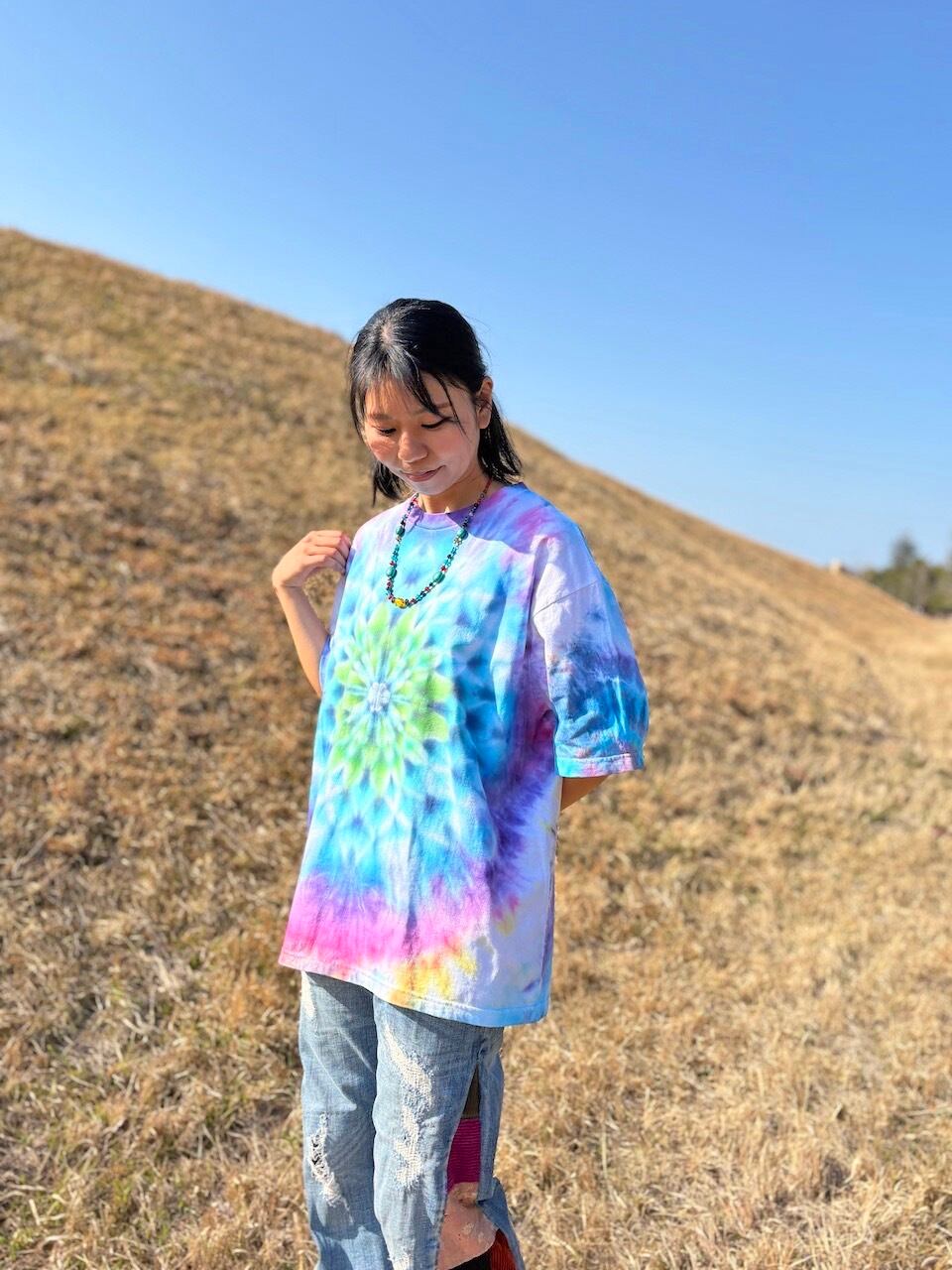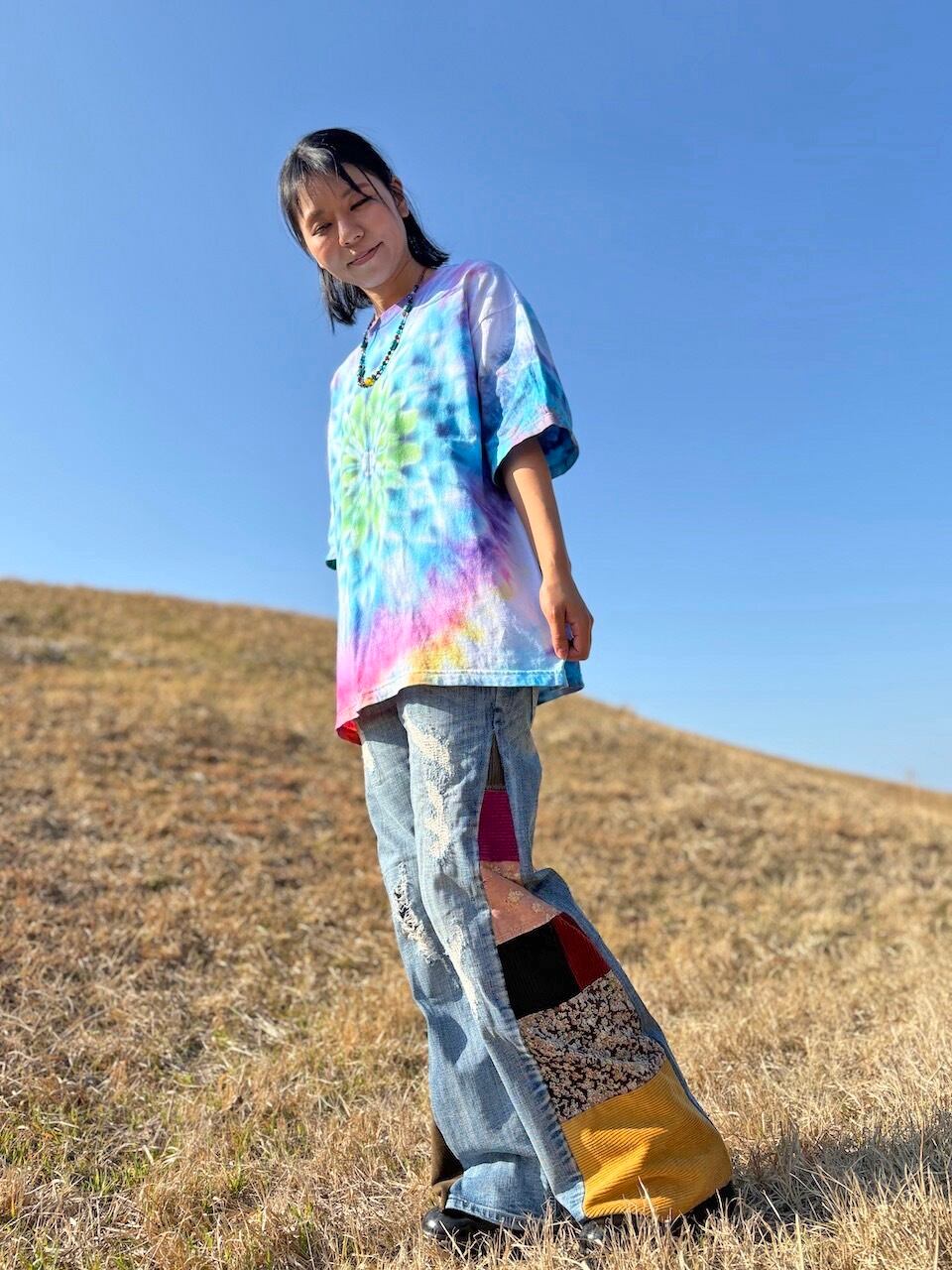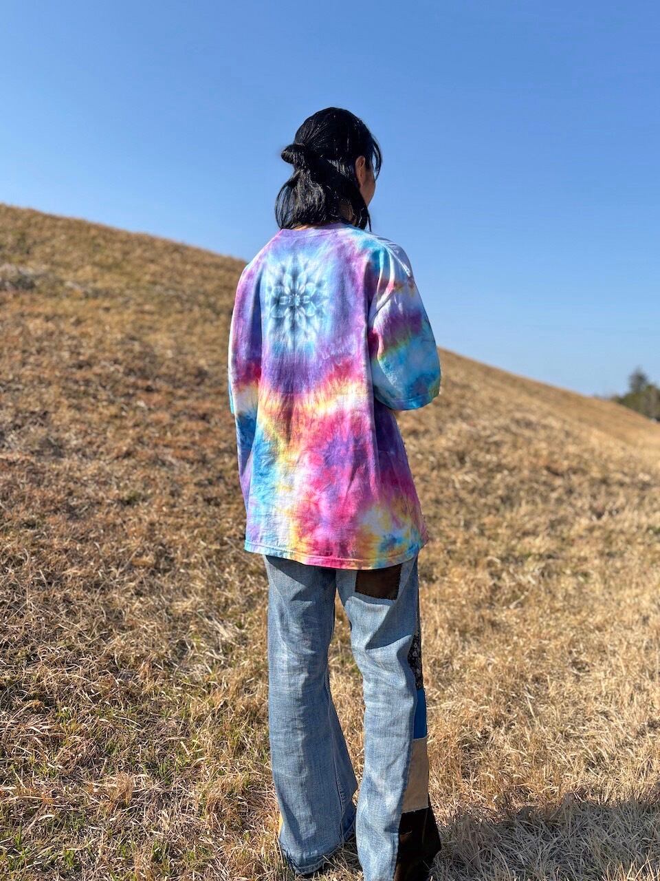 タイダイ Tie-dye ビッグシルエット Tシャツ Lサイズ 曼荼羅 カラフル ムラ染め Hippies Dye HD25-56