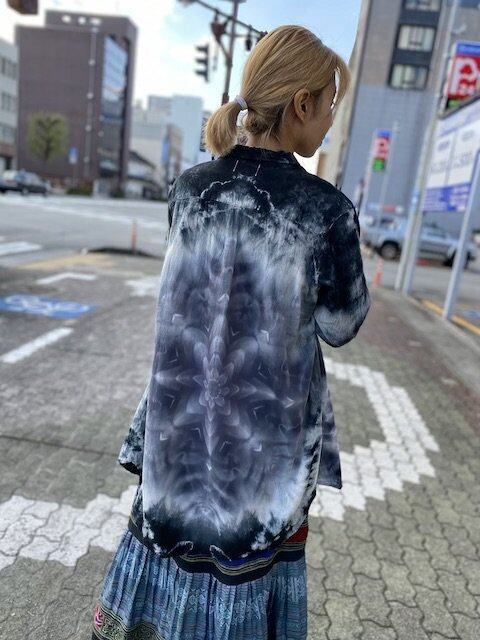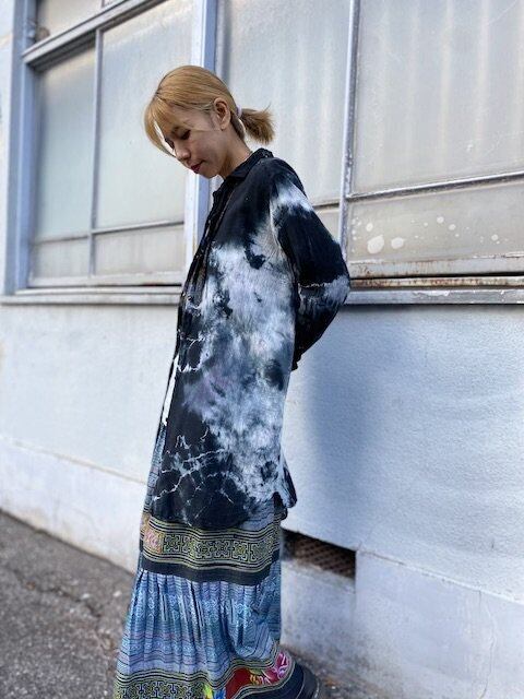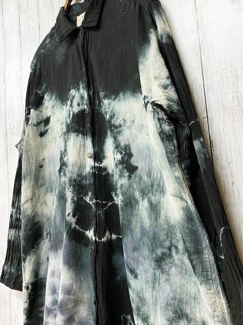 タイダイ染め Tie-dye ロングシャツ ムラ染め ブラックビューティ 美しい朧月 スノーフレイク模様 HD12-79