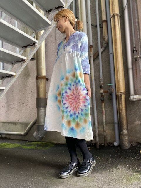 タイダイ染め Tie-dye 空や雲を映す湖面カラーに幻想的な曼荼羅模様 HD12-78
