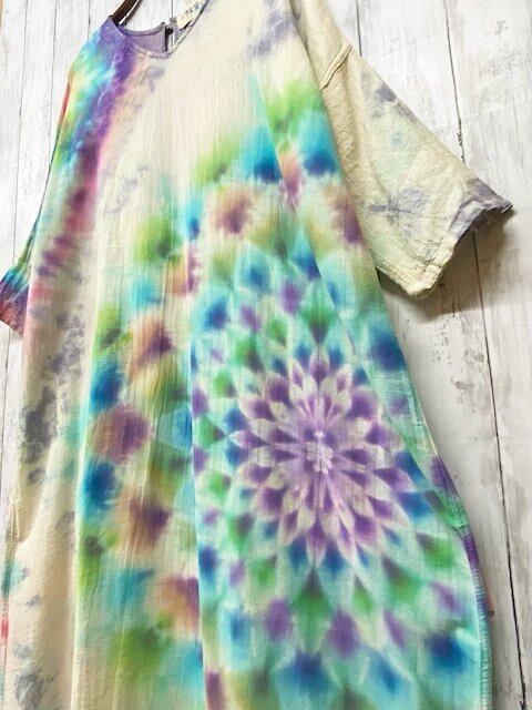 タイダイ染め Tie-dye ワンピース 空や虹を映した水面の揺らぎに幻想的な大曼荼羅 HD12-77