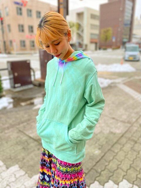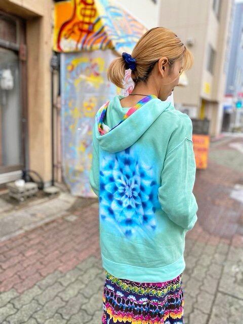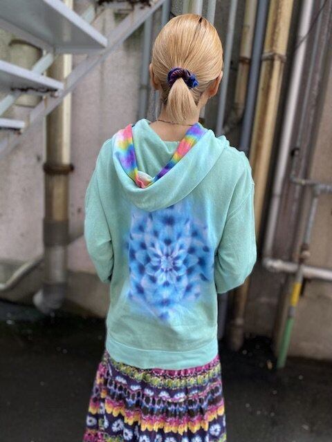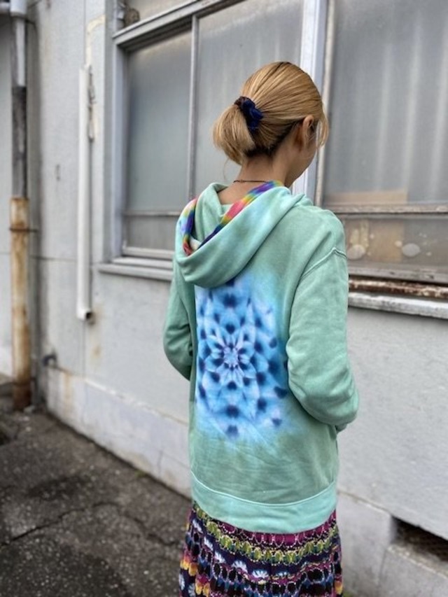 タイダイ染め Tie-dye プルオーバー パーカー 草木色グリーン×曼荼羅 メンズL HD12-92