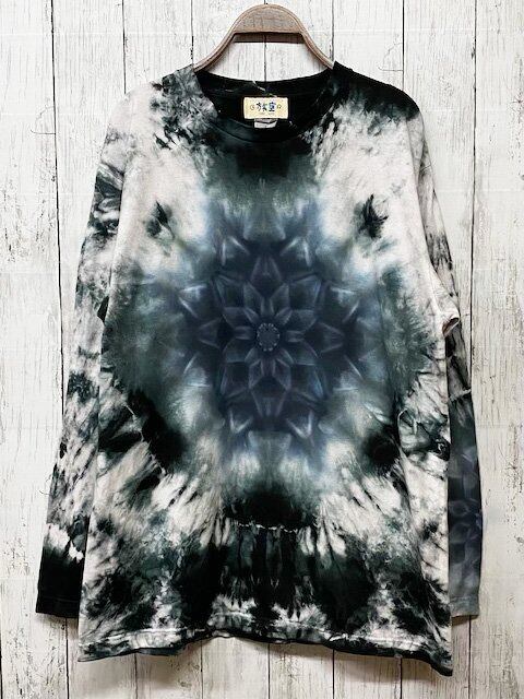 タイダイ染め Tie-dye 長袖Tシャツ 曼荼羅 マンダラ メンズ Lサイズ ブラックビューティ ムラ染め HD12-59