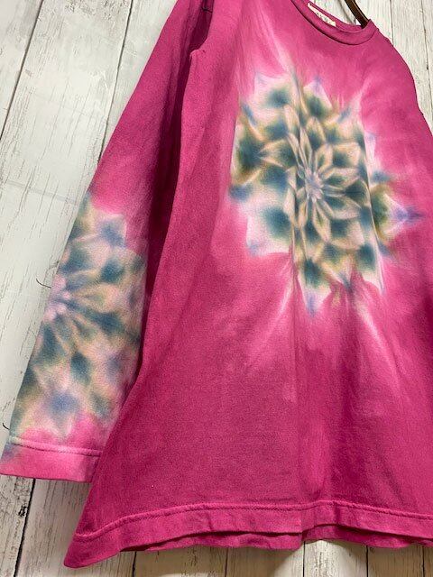 タイダイ染め Tie-dye 長袖Tシャツ 曼荼羅 マンダラ メンズ XLサイズ ワインレッド HD12-57
