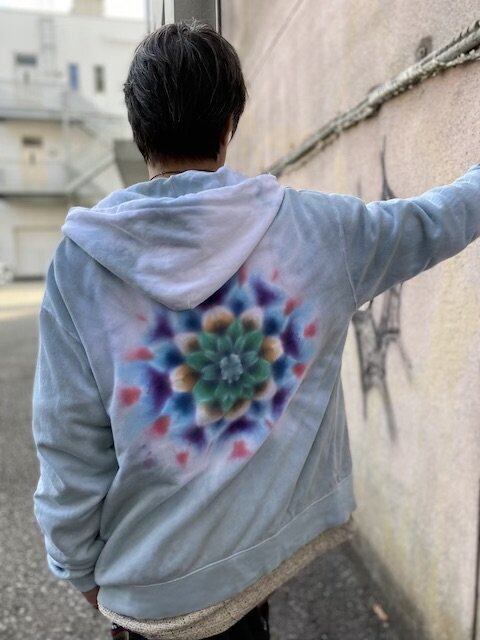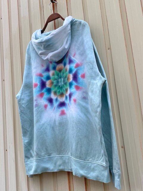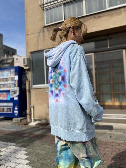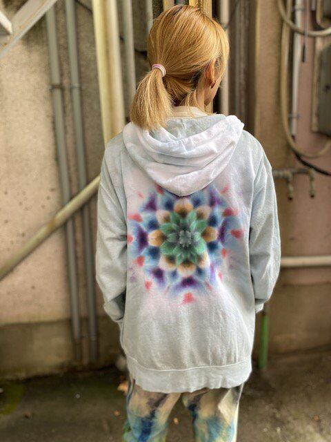 タイダイ染め Tie-dye ジップアップ フーディー ブルーグリーン 曼荼羅 メンズ XLサイズ HD12-48