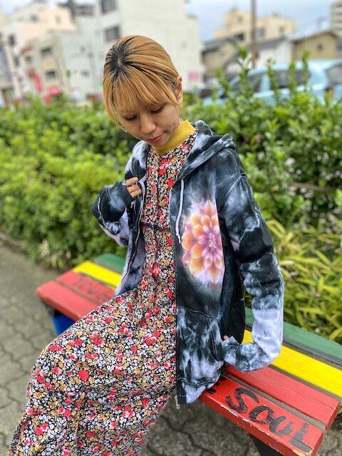 タイダイ染め Tie-dye ジップアップ フーディー メンズ Mサイズ 曼荼羅 HD12-47