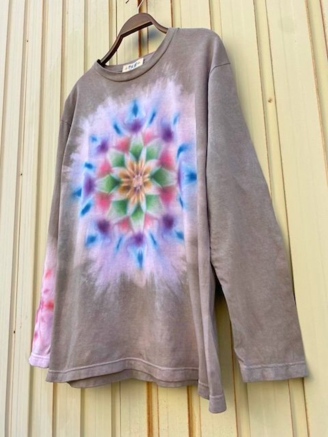 タイダイ染め Tie-dye Tシャツ 曼荼羅 マンダラ メンズ Mサイズ ベージュグレー HD12-45