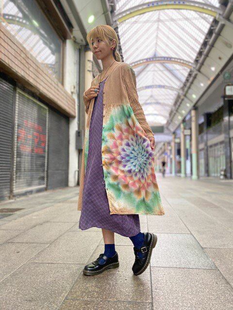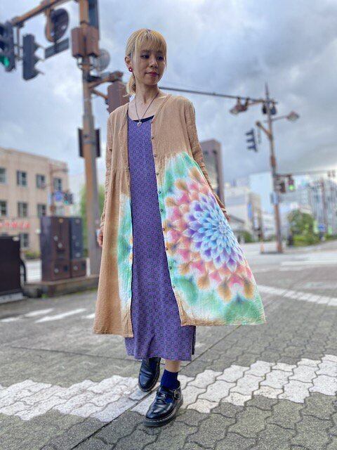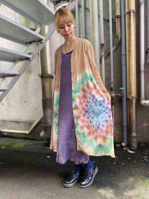 タイダイ染め Tie-dye 前開き ロングワンピース 奥深いベージュブラウンに幻想的な大曼荼羅 HD12-33