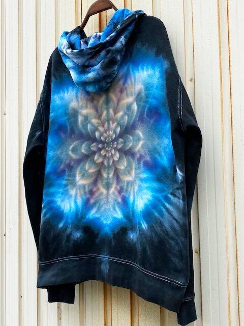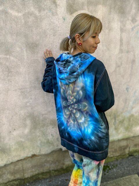 タイダイ染め Tie-dye ジップアップ フーディー ブラックビューティ スノーフレイク 曼荼羅 メンズ XLサイズ HD12-22