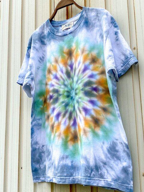 タイダイ染め Tie-dye シャツ メンズ Mサイズ グレー系ムラ染め 美しい曼荼羅模様 HD12-15