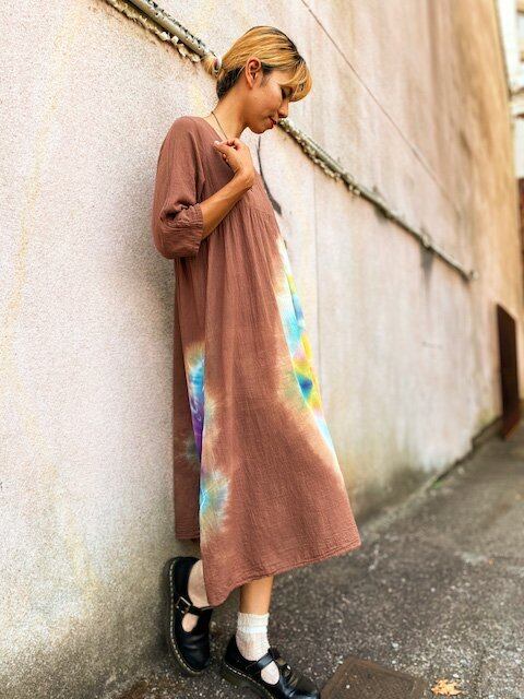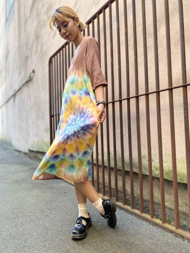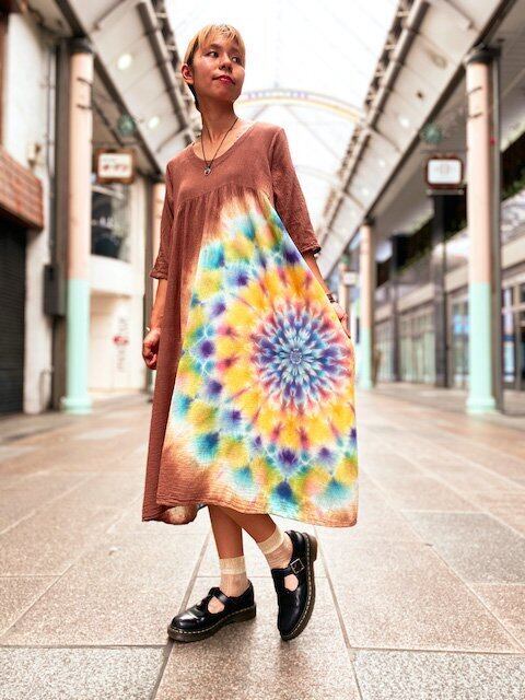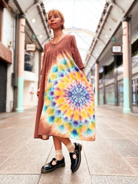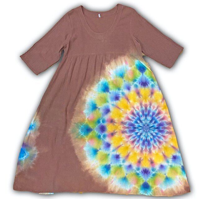 タイダイ染め Tie-dye ワンピース 優しいブラウン 幻想的に広がる大曼荼羅 HD12-13