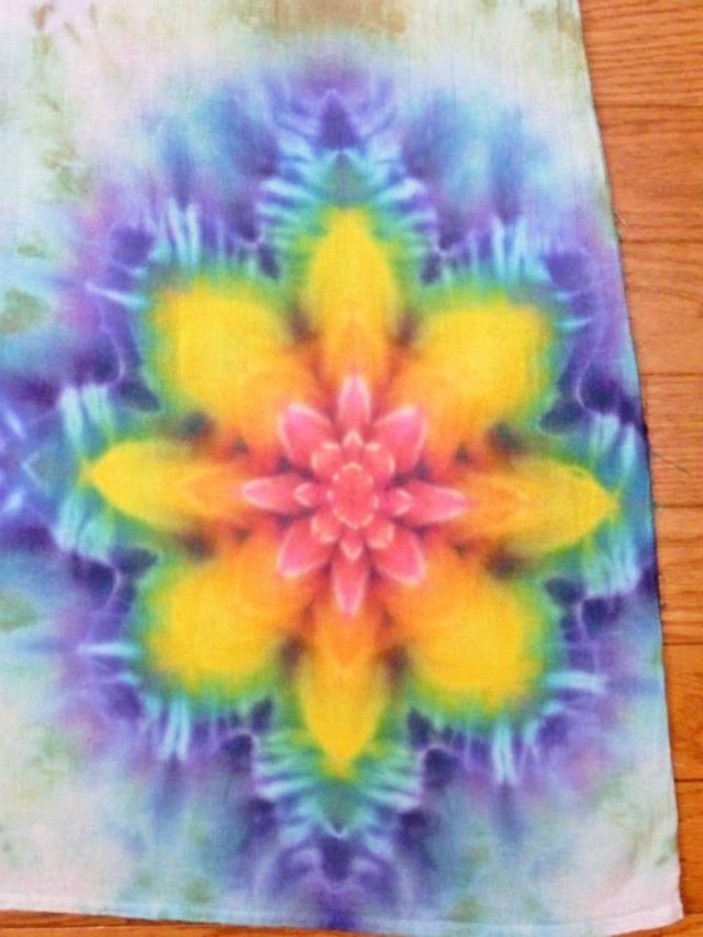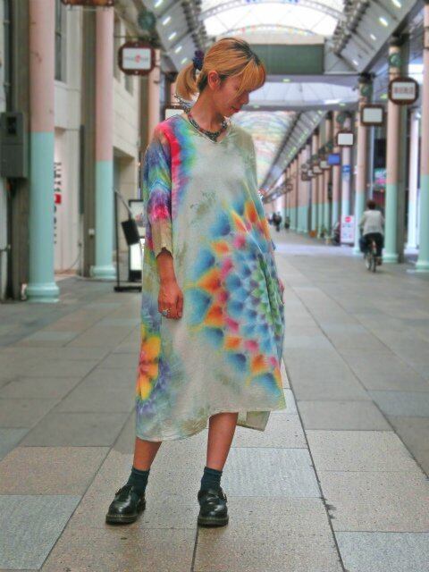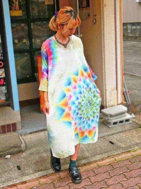 タイダイ染め Tie-dye ゆったりワンピース 空や陽を映したさざ波のような湖面カラーに映える幻想的な大曼荼羅 HD12-5