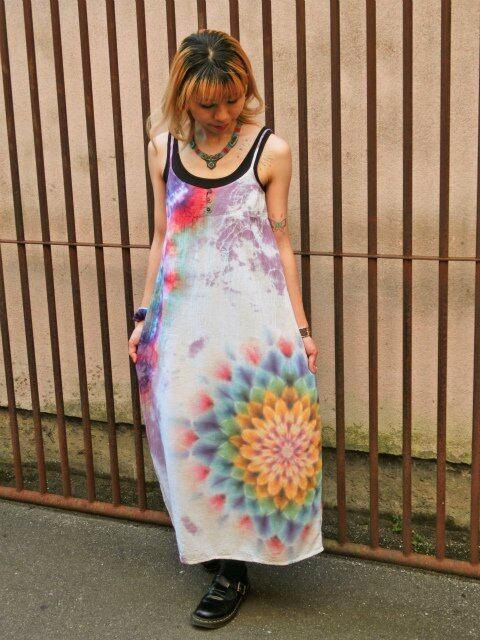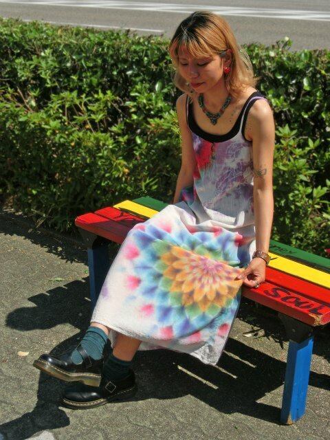 タイダイ染め Tie-dye キャミワンピ 爽やかな白とレインボーカラーに美しい大曼荼羅 HD11-85