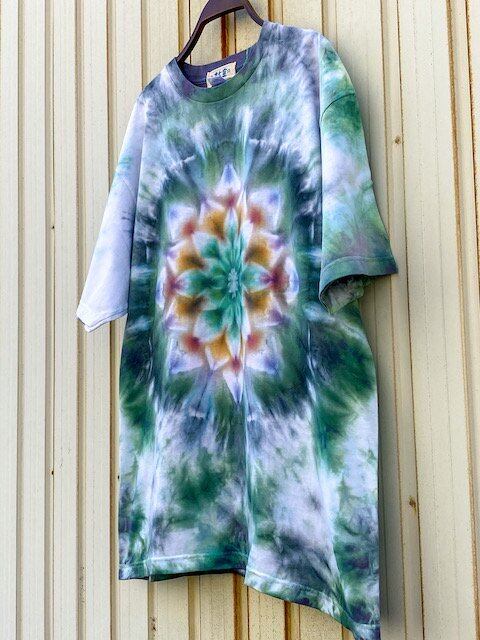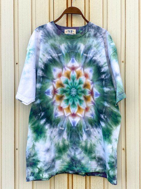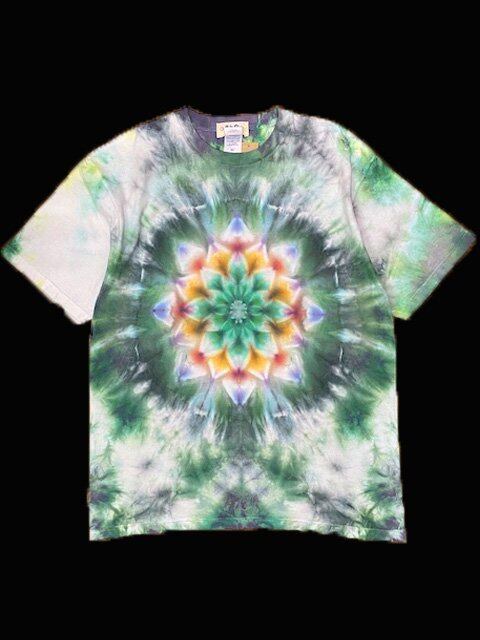 タイダイ染め Tie-dye Tシャツ メンズ XL グリーン系ムラ染めに美しい曼荼羅模様 HD11-72