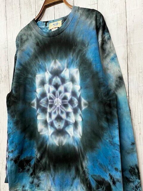 タイダイ染め Tie-dye 長袖Tシャツ 曼荼羅 マンダラ メンズ Lサイズ ブラック HD12-99