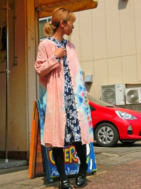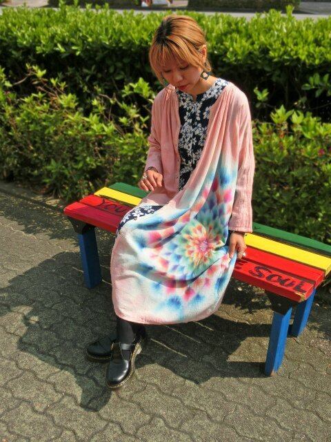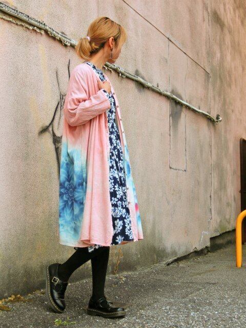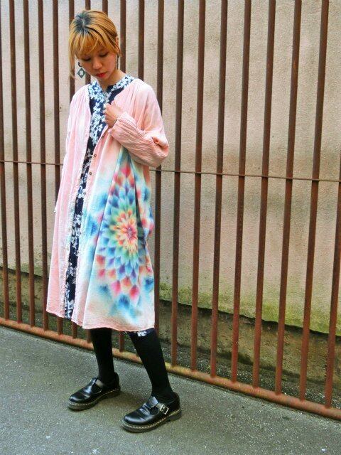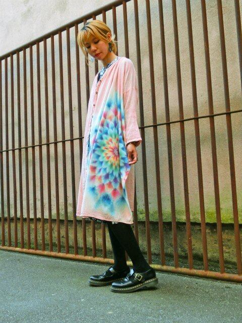タイダイ染め Tie-dye ロングワンピース ゆったり長袖 優しい桜色に幻想的な大曼荼羅 HD11-56