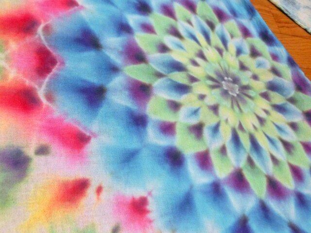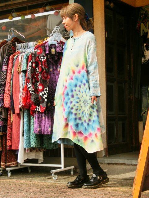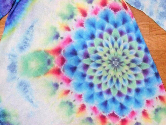 タイダイ染め Tie-dye ヘンリーネック 長袖ワンピース 虹と風の湖面カラーに幻想的な大曼荼羅 HD11-41