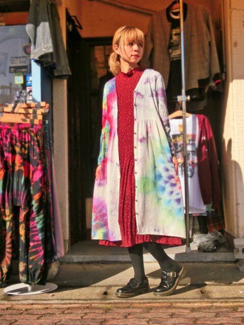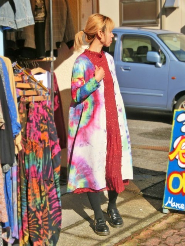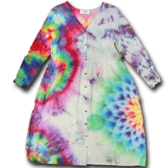 タイダイ染め Tie-dye 前開き ロングワンピース 虹色に華やかで幻想的な大曼荼羅 HD11-29