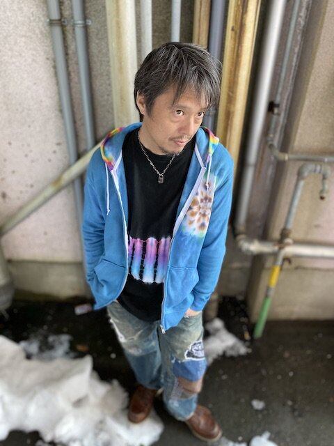 フードのふちをカラフルに染め上げた絞り染めの究極の逸品