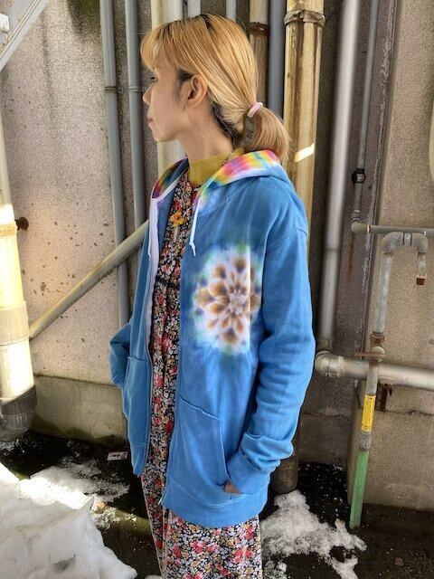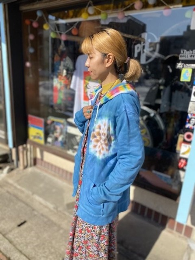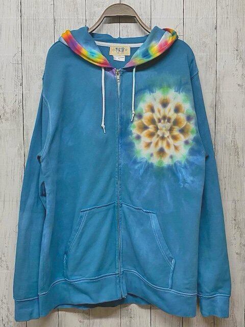 タイダイ染め Tie-dye ジップアップ フーディー ブルー 曼荼羅 メンズ XLサイズ HD13-07