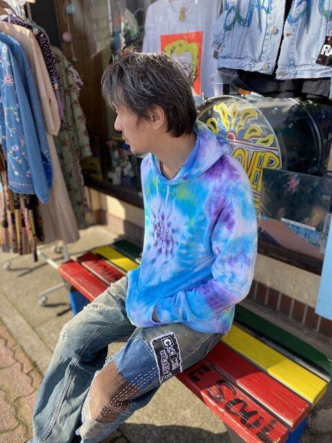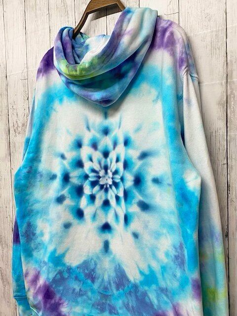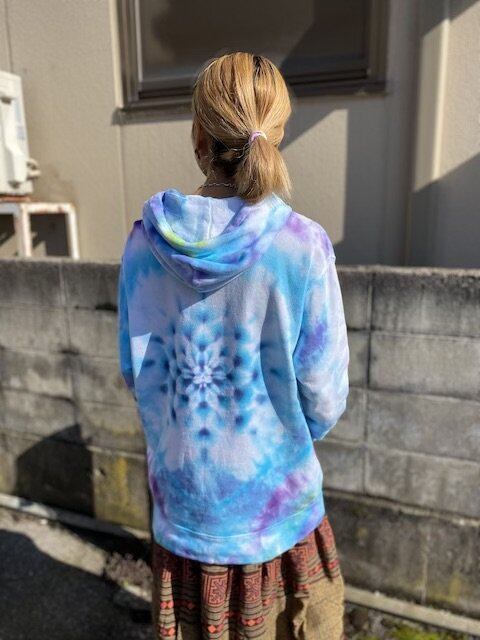 タイダイ染め Tie-dye プルオーバー フーディー 曼荼羅 メンズXL ブルー系 ムラ染め HD13-06