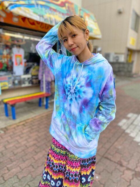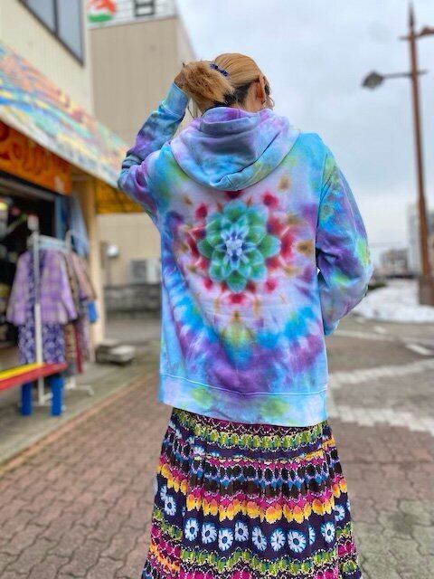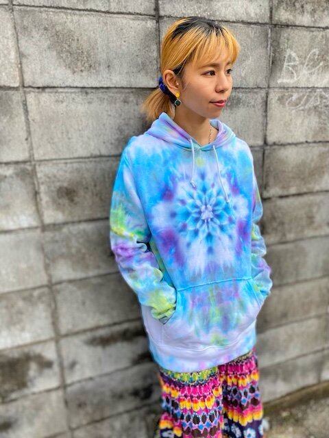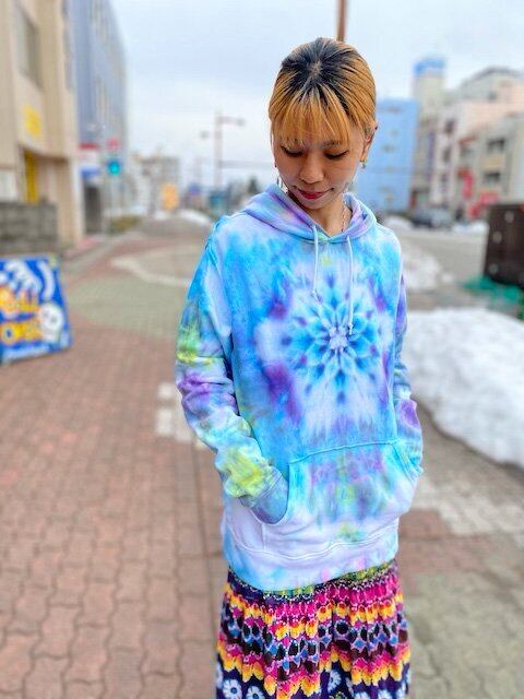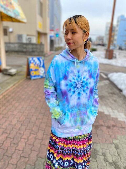 タイダイ染め Tie-dye プルオーバーフーディームラ染め 曼荼羅 メンズ L ブルー系 ムラ染め HD13-16