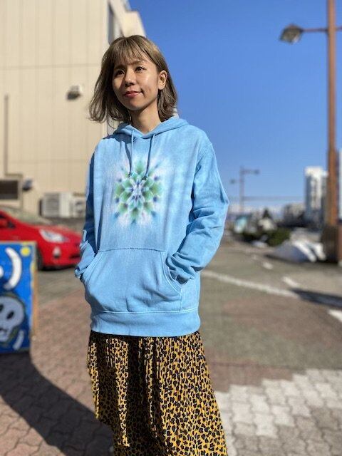 タイダイ染め Tie-dye プルオーバーフーディームラ染め 曼荼羅染め メンズ Lサイズ ブルー HD13-30